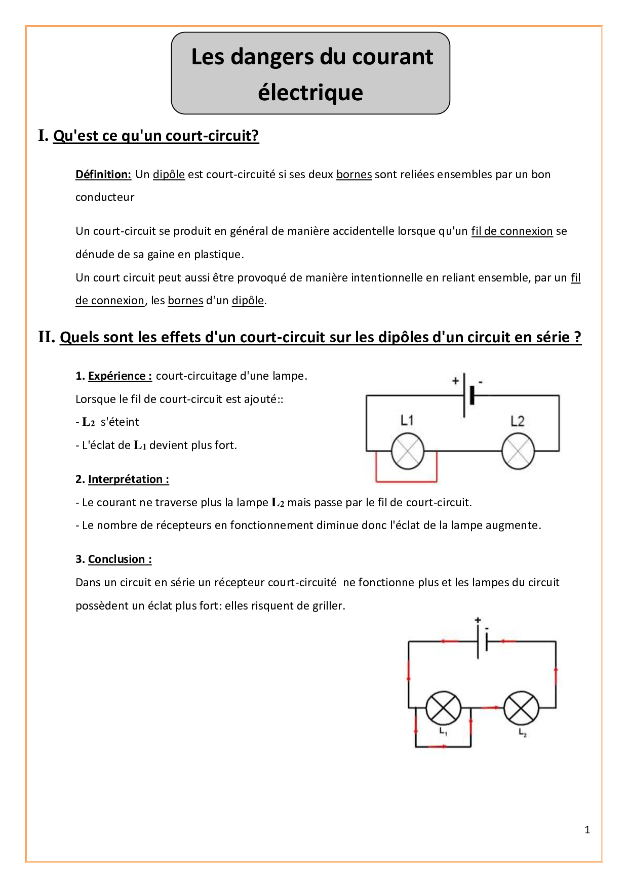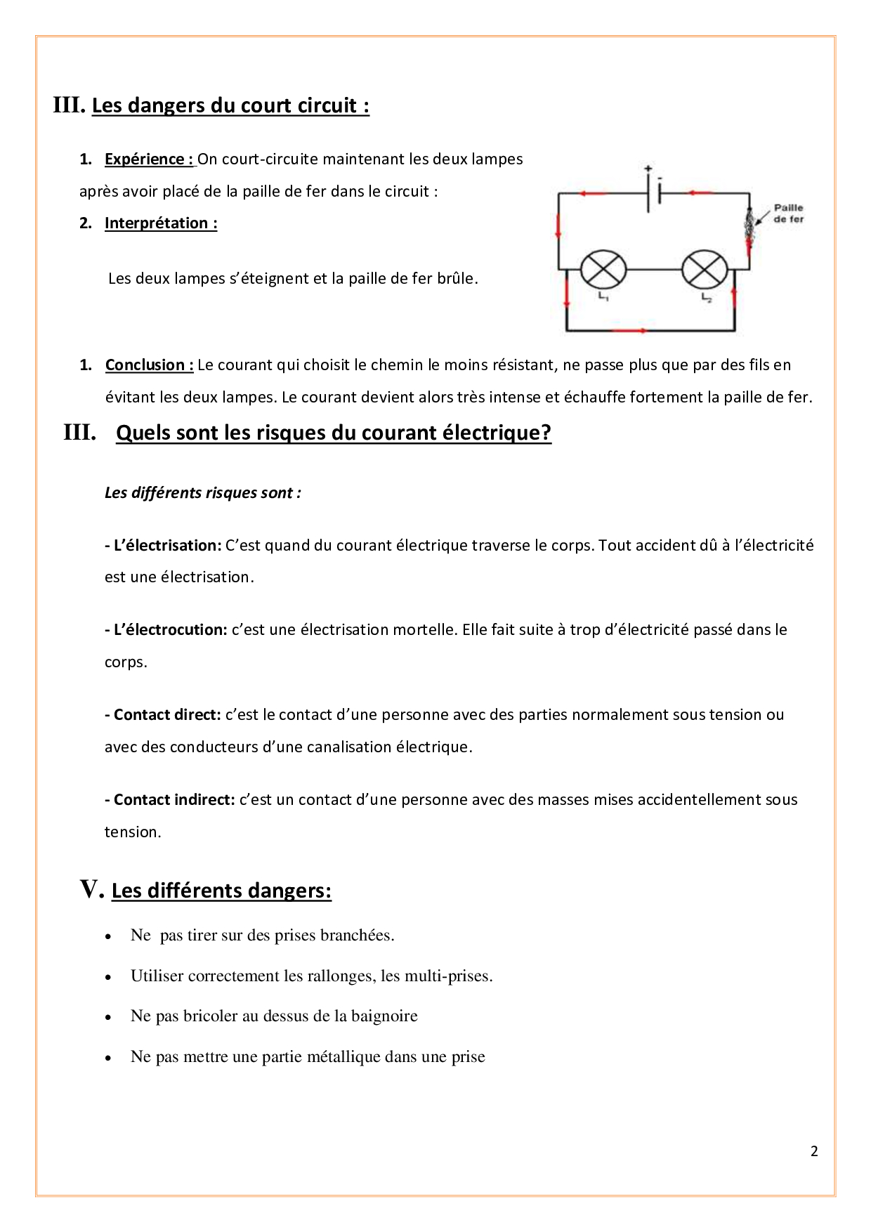 Prévention des dangers du courant électrique - Résumé de cours 2