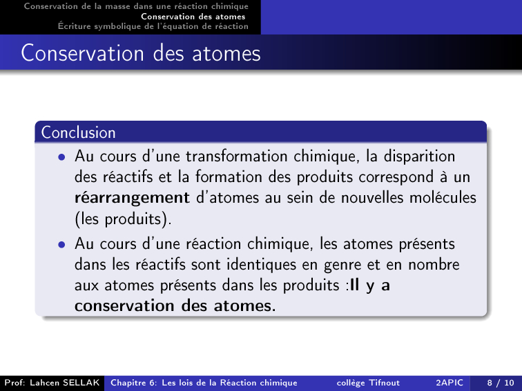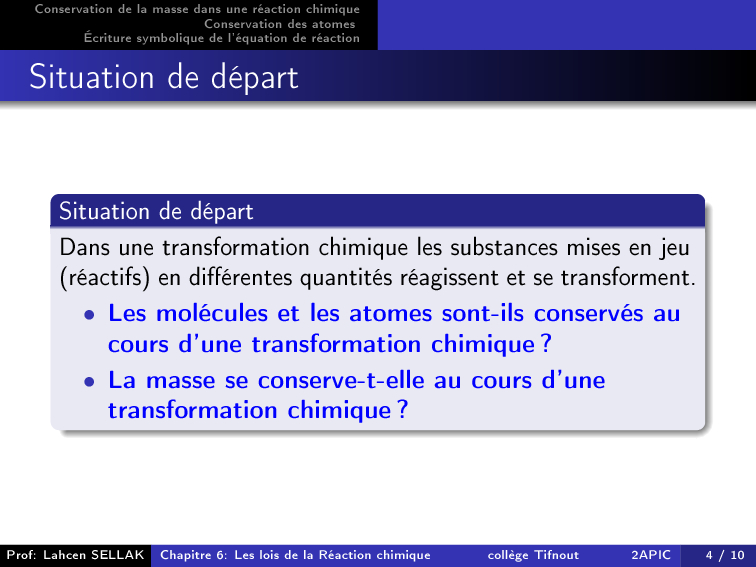 Les lois de la réaction chimique - Cours 2