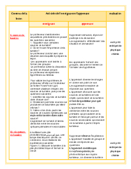 Les sources et les récepteurs de la lumière - Fiche pédagogique
