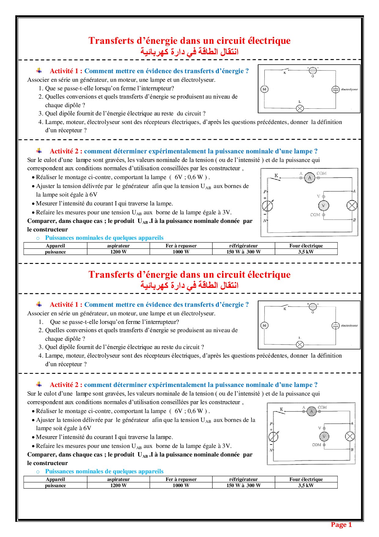 Transfert d'énergie dans un circuit électrique - Activités 2