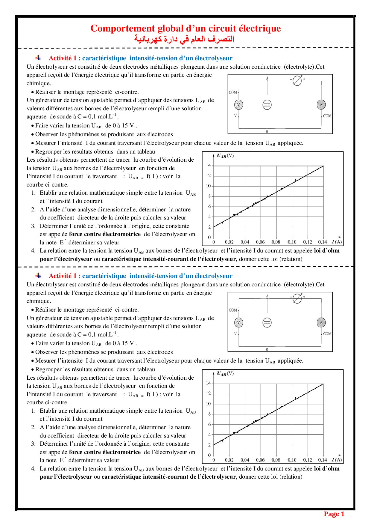 Comportement global d'un circuit électrique - Activités 1