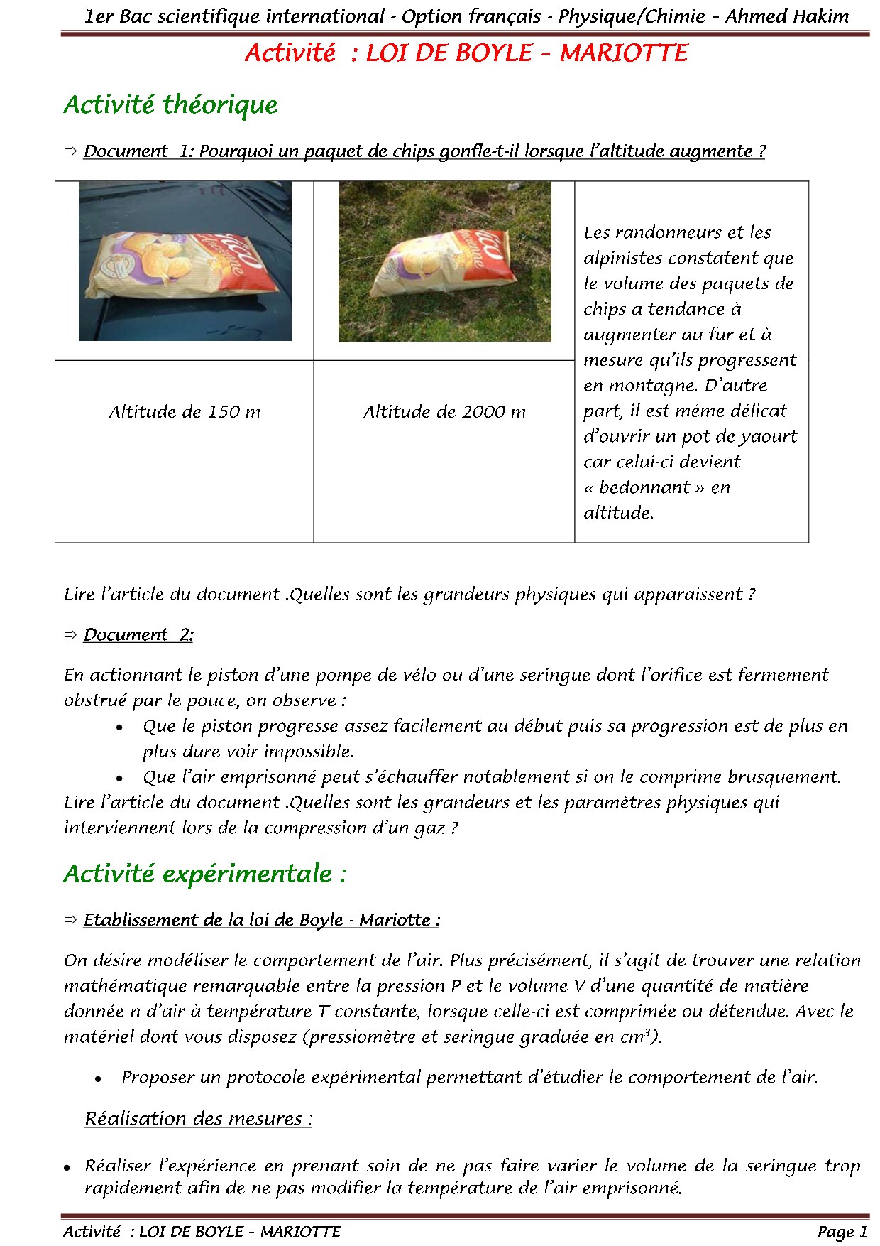 Physique et Chimie 1er BAC Sciences Mathématiques BIOF