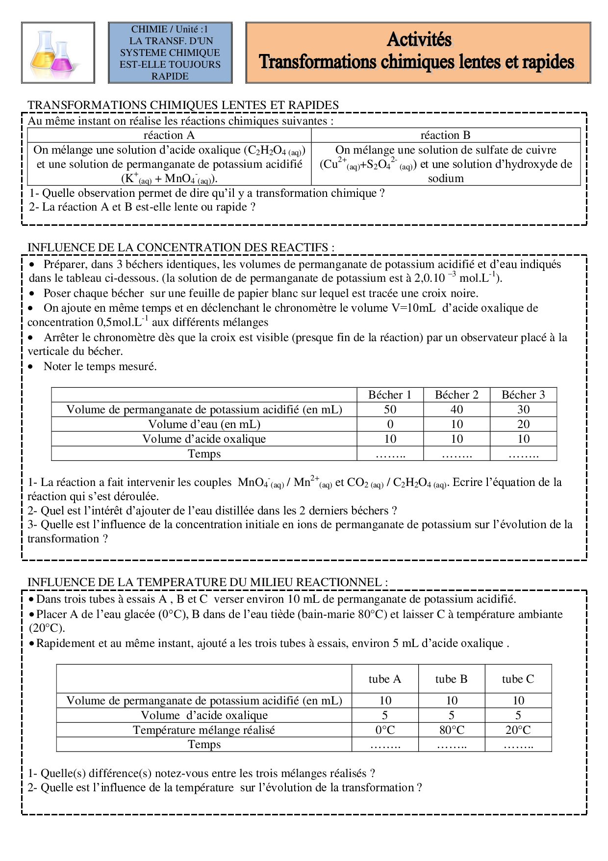 Transformations lentes et transformations rapides - Activités 2