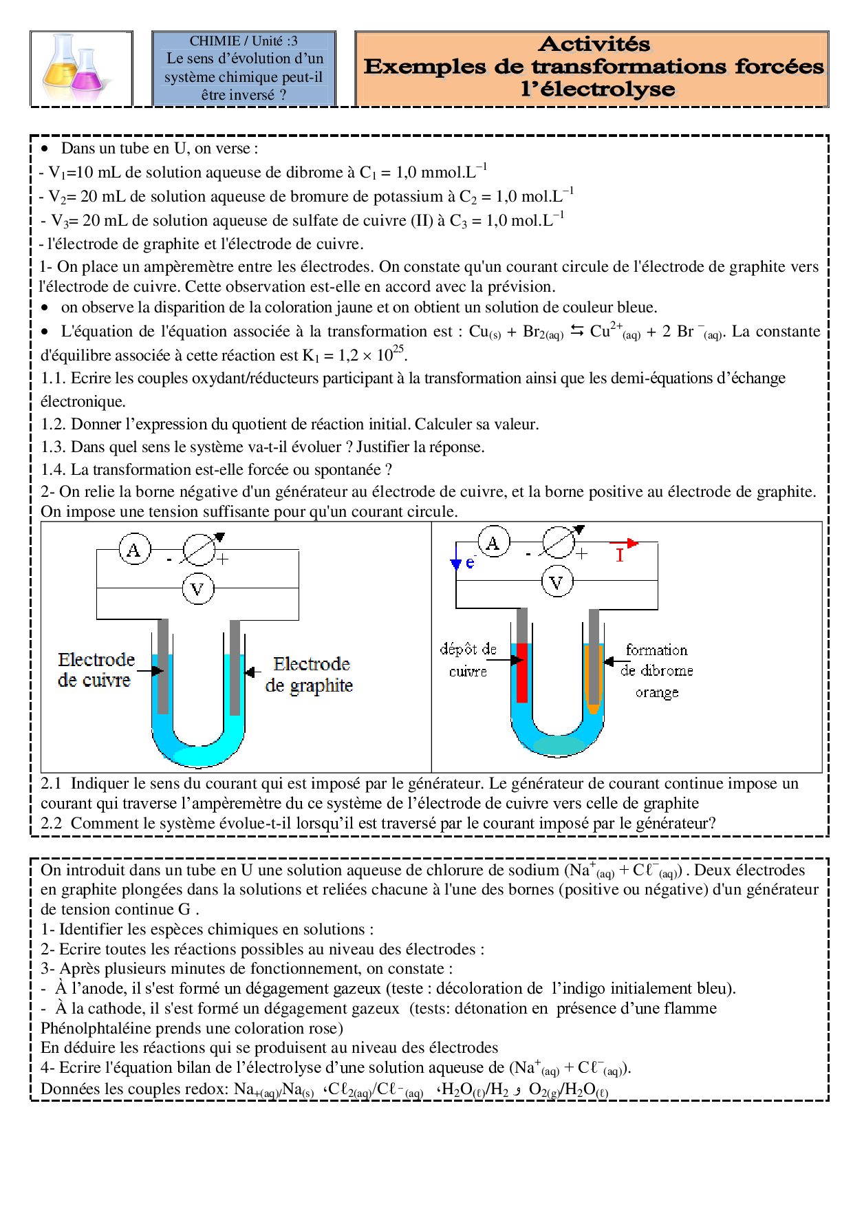 Transformations forcées (Électrolyse) - Activités 1