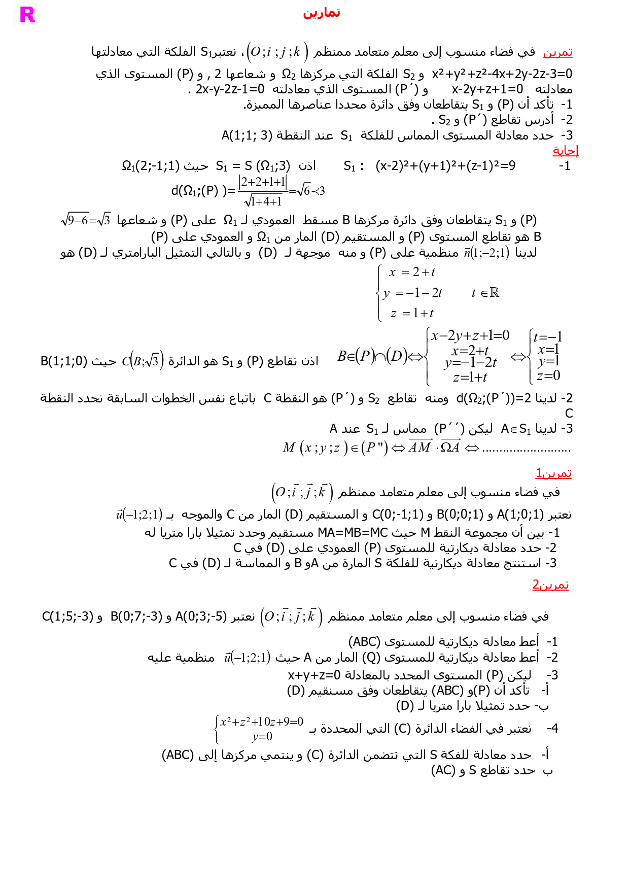 الهندسة الفضائية (الجداء السلمي في الفضاء - الفلكة - الجداء المتجهي)