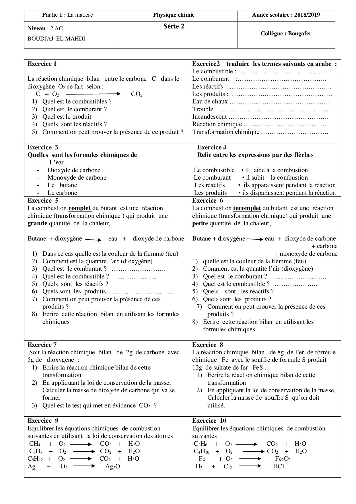 Les lois de la réaction chimique - Exercices non corrigés 3
