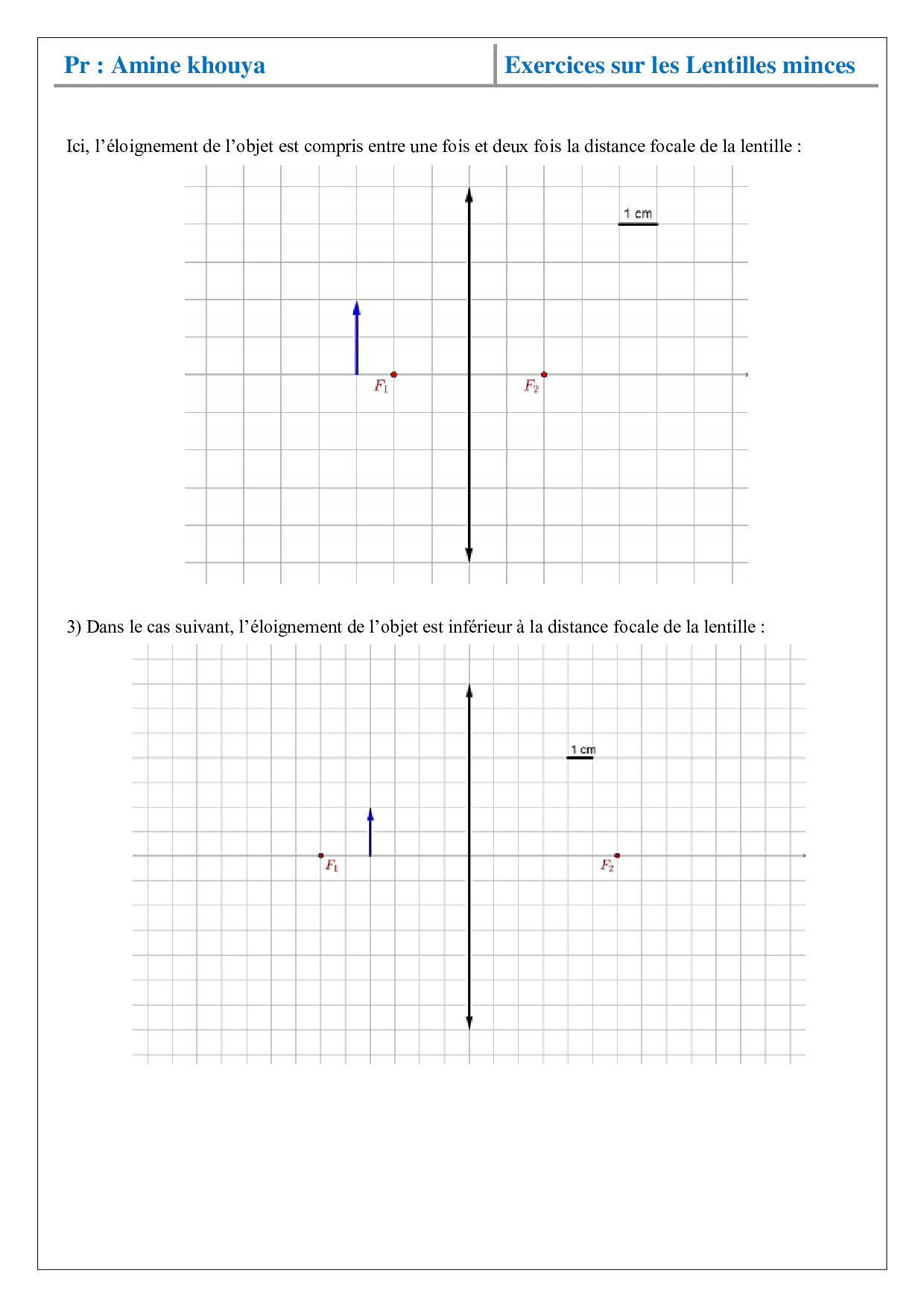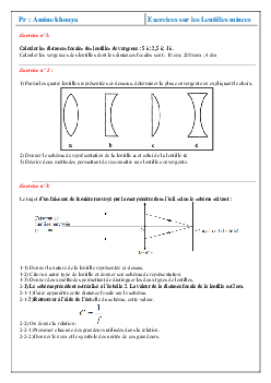 Les lentilles minces - L'image formée par une lentille mince convergente - Exercices non corrigés 2