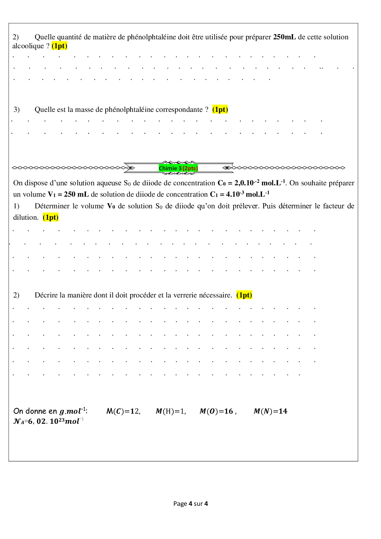 Devoir 2 Modèle 6 - Physique-Chimie TC Semestre 2