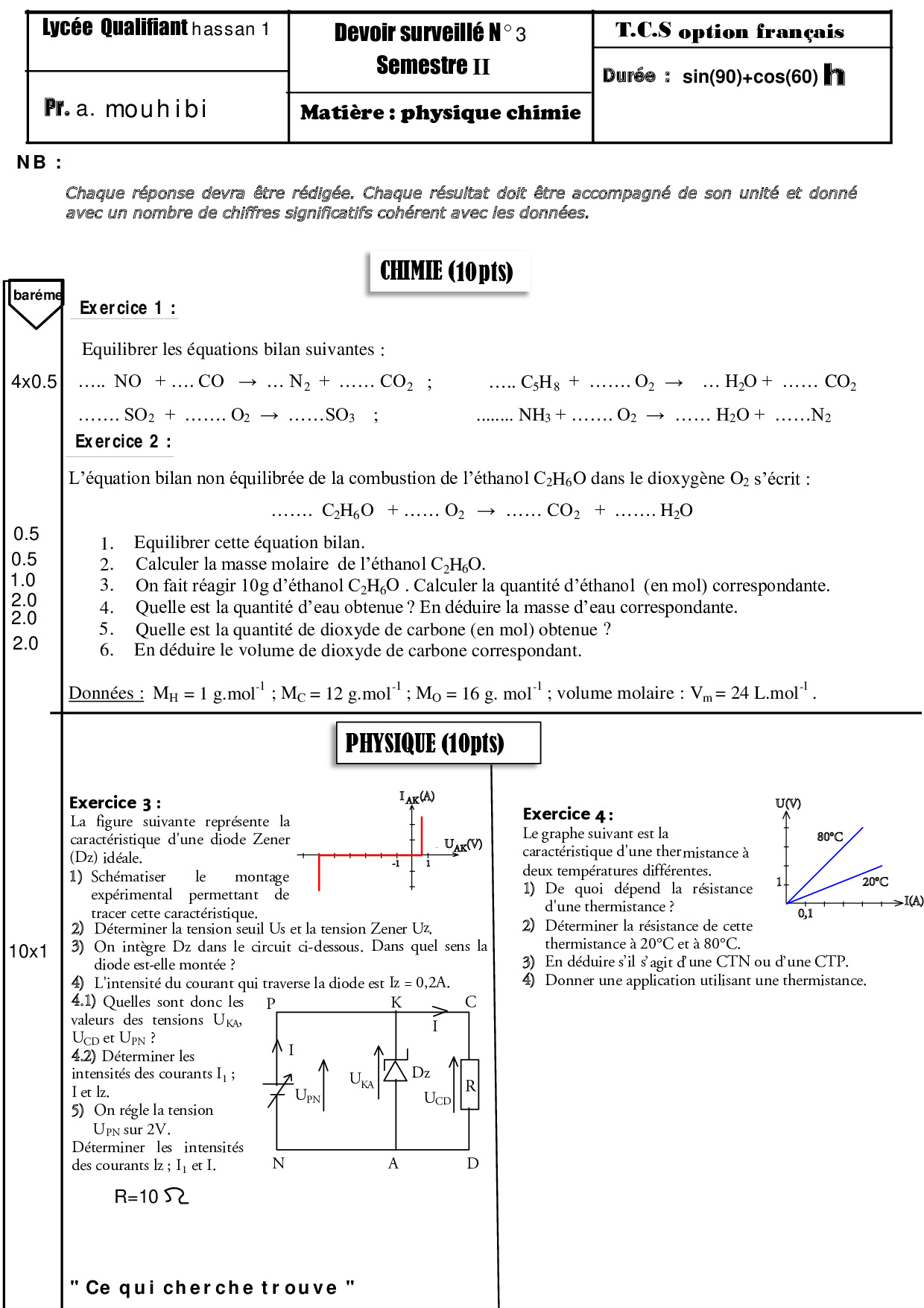 Devoir 3 Modèle 5 - Physique-Chimie TC Semestre 2