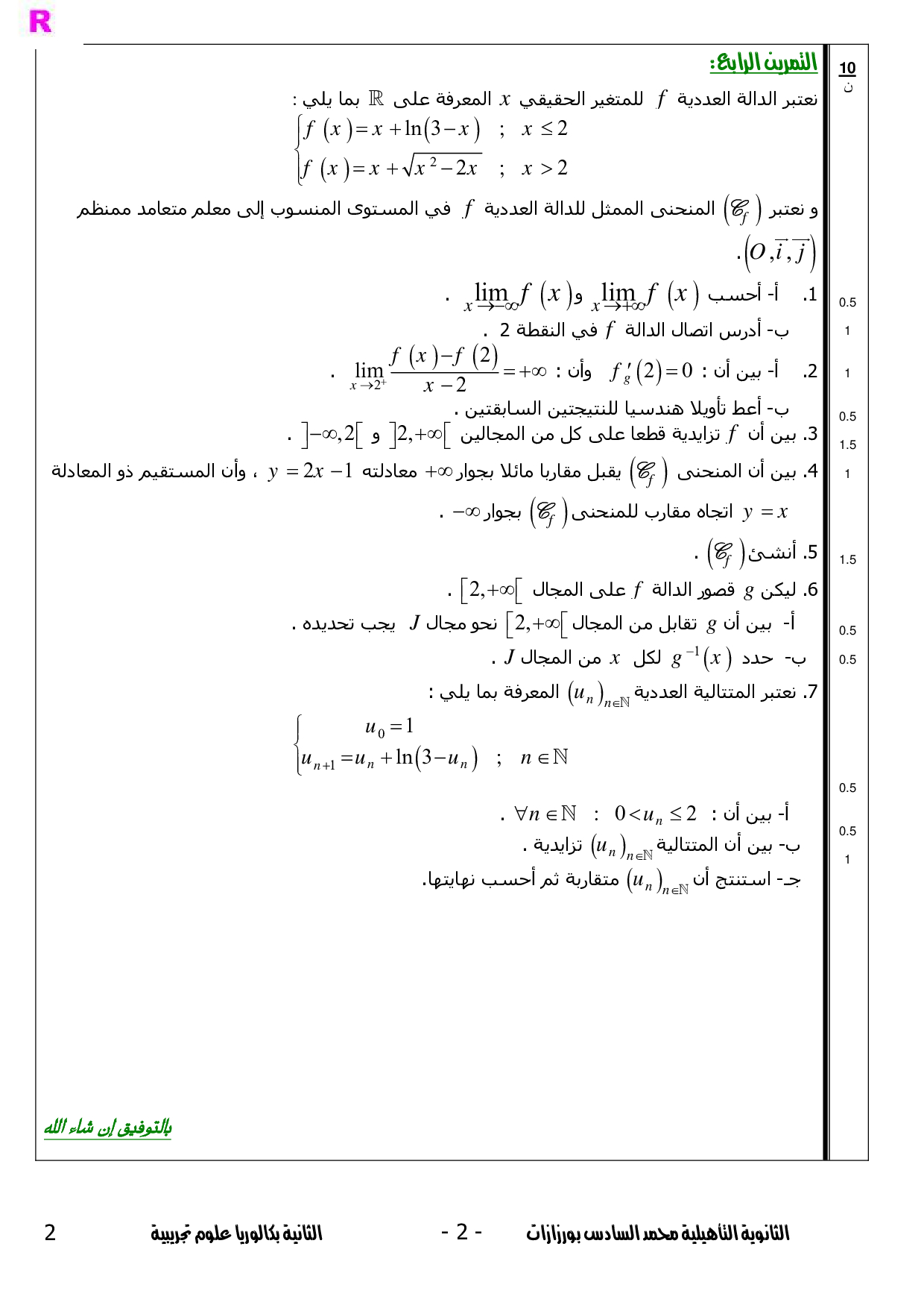 الامتحان التجريبي 5 - الرياضيات ثانية باك علوم وتقنيات (الموضوع)