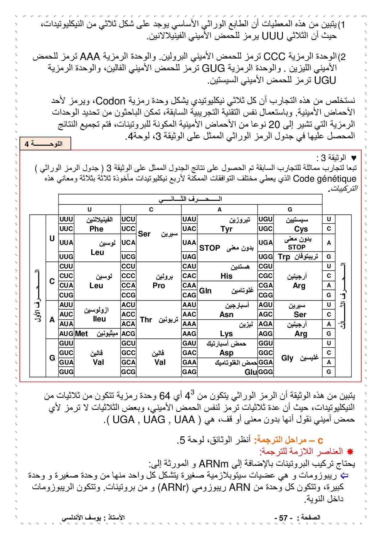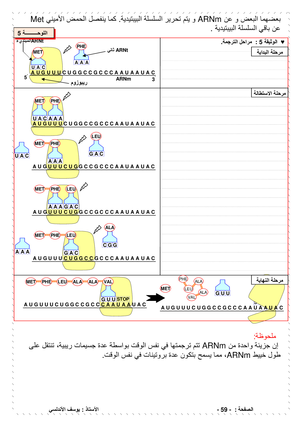 آلية تعبير الخبر الوراثي - الدرس