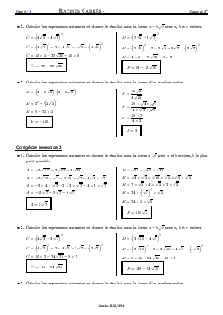 Racines Carrées - Corrigé série d'exercices 2