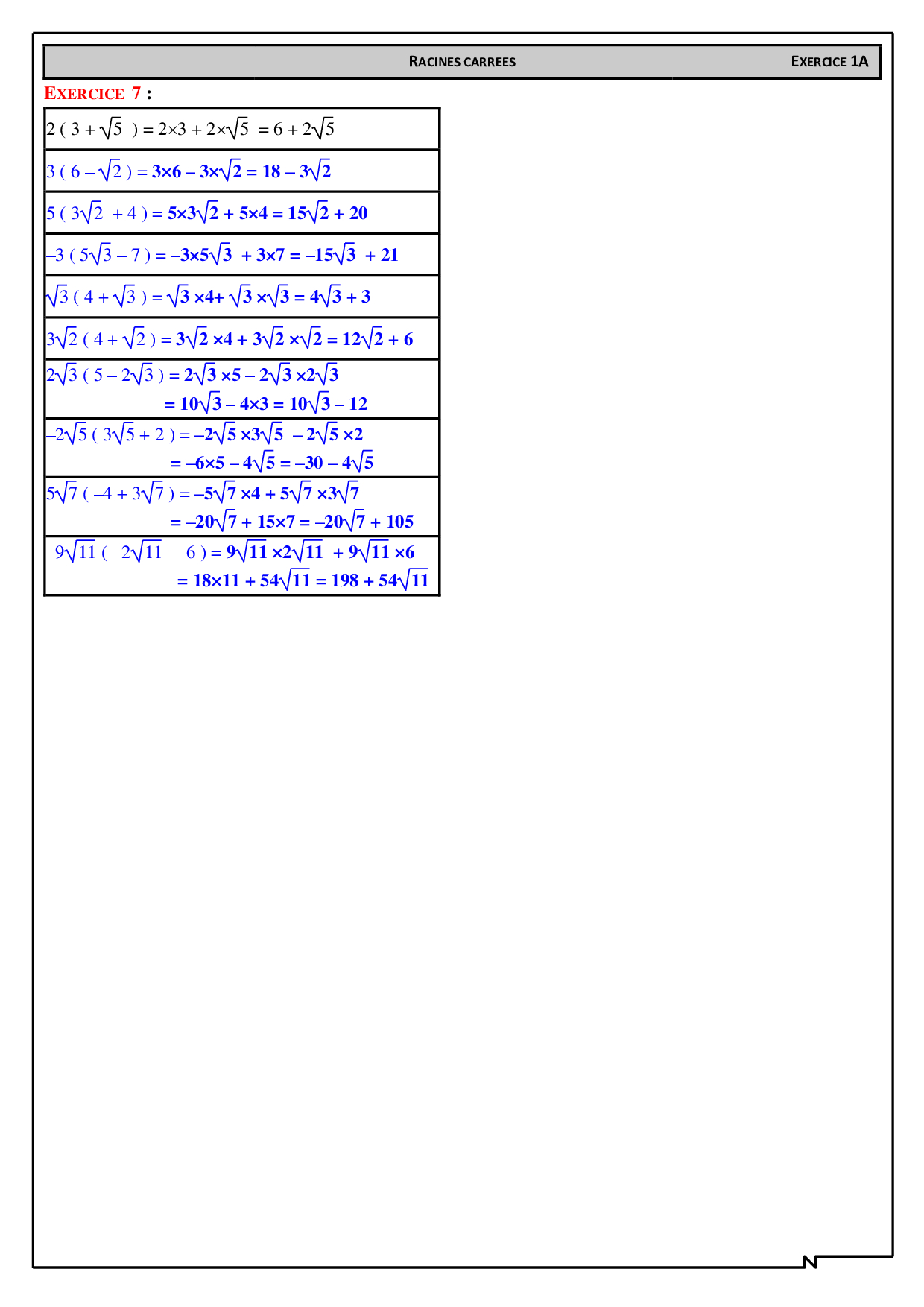 Manipulation de racines carrées - Corrigés d'exercices