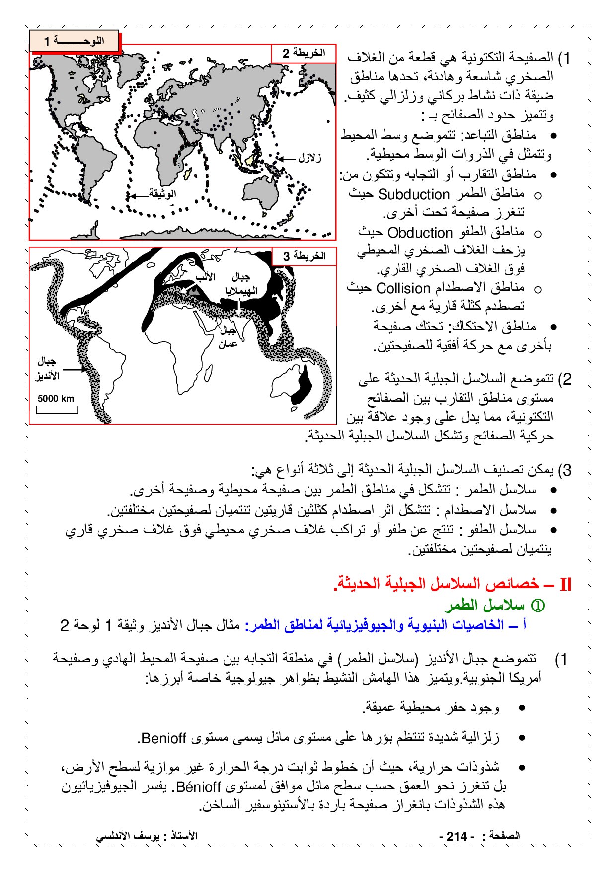السلاسل الجبلية الحديثة وعلاقتها بتكتونية الصفائح - الدرس
