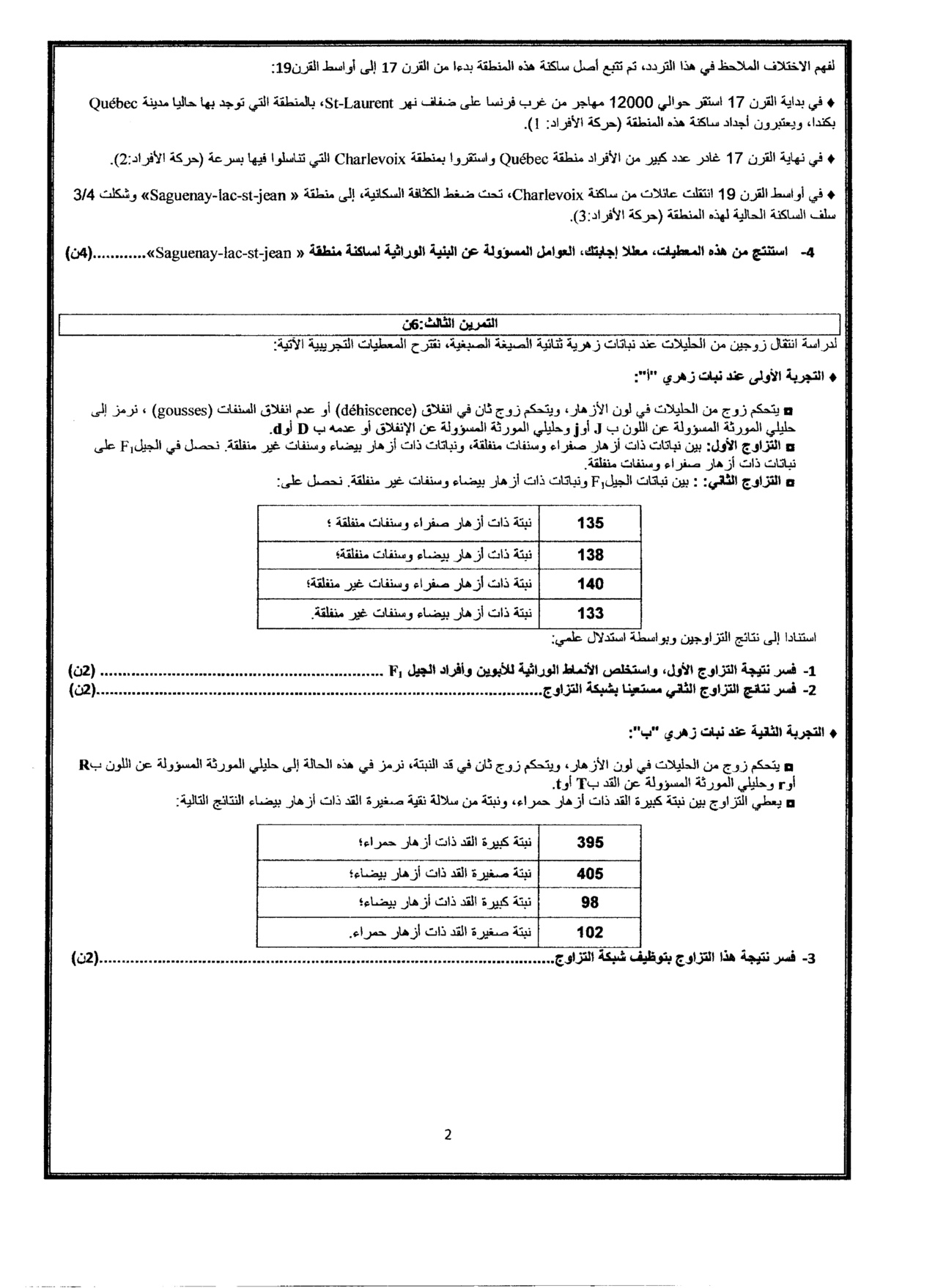 الفرض 1 نموذج 5 - علوم الحياة والارض ثانية باك علوم الحياة والأرض الدورة الثانية