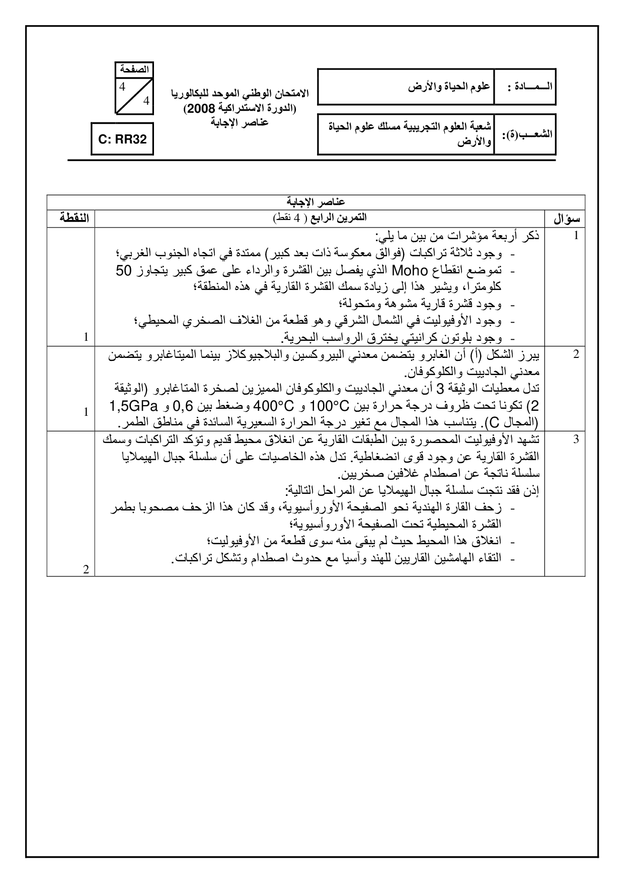 علوم الحياة والأرض (علوم الحياة والأرض) 2008 الدورة الإستدراكية - التصحيح