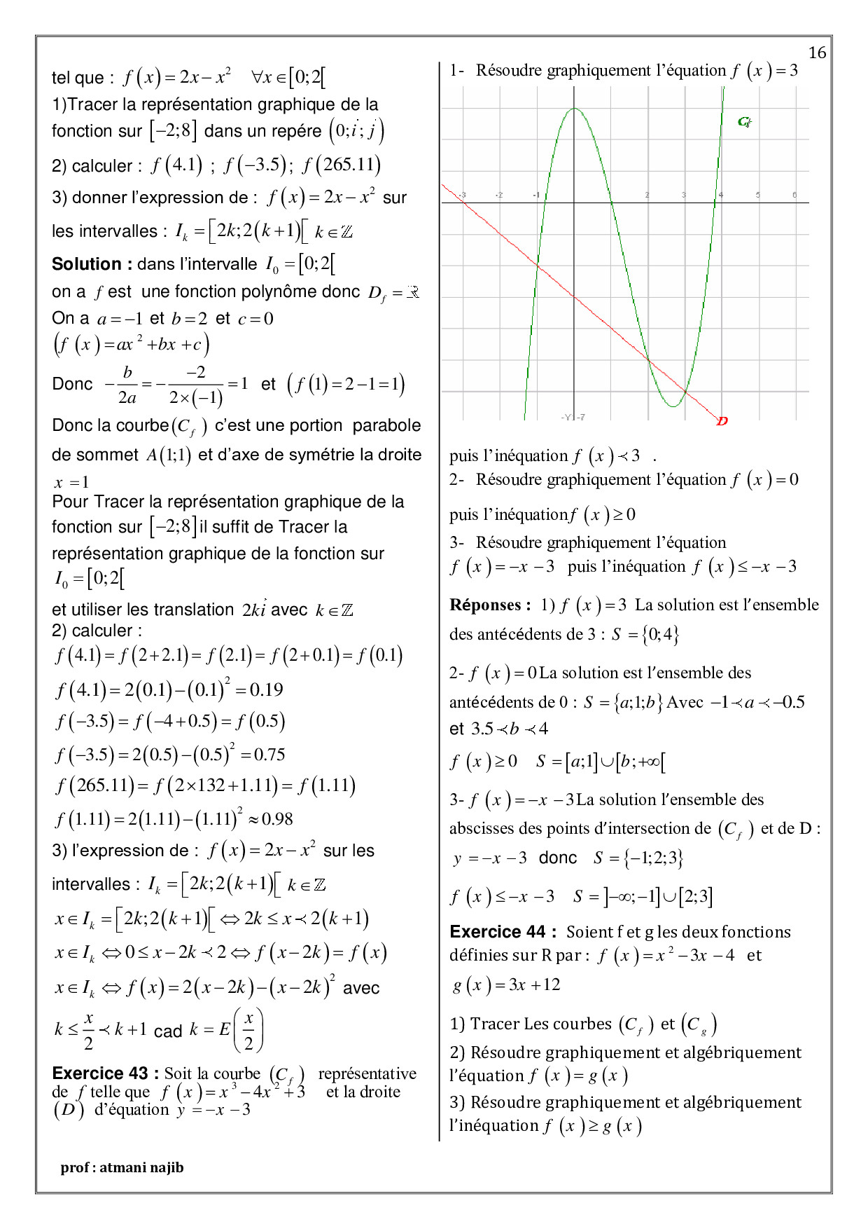 Généralités sur les fonctions - Corrigé série d'exercices 1