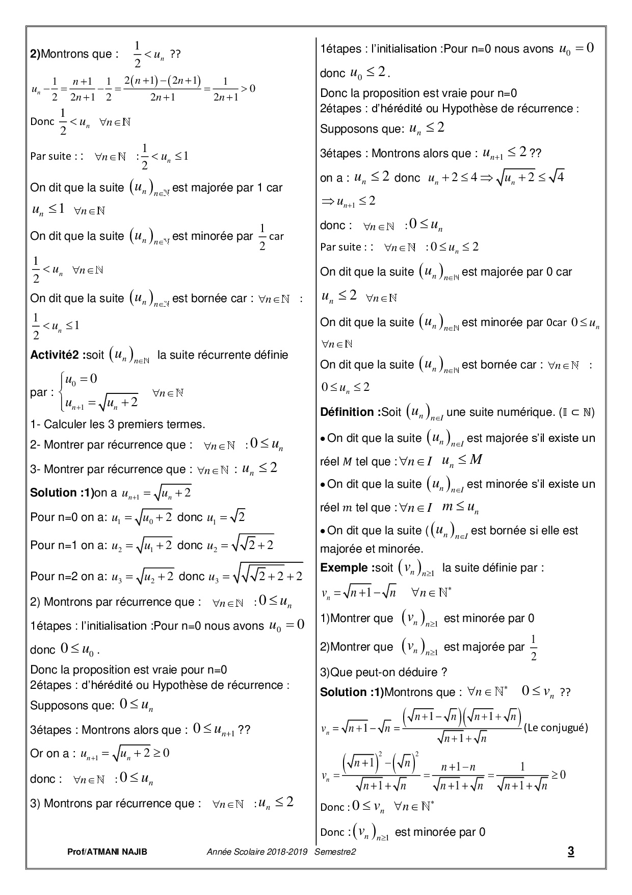 Les suites numériques - Cours et exercices corrigés