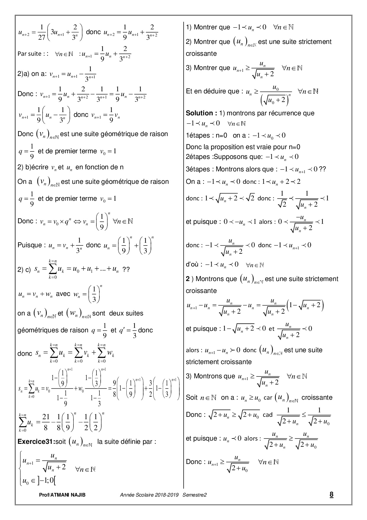 Les suites numériques - Corrigé série d'exercices 1