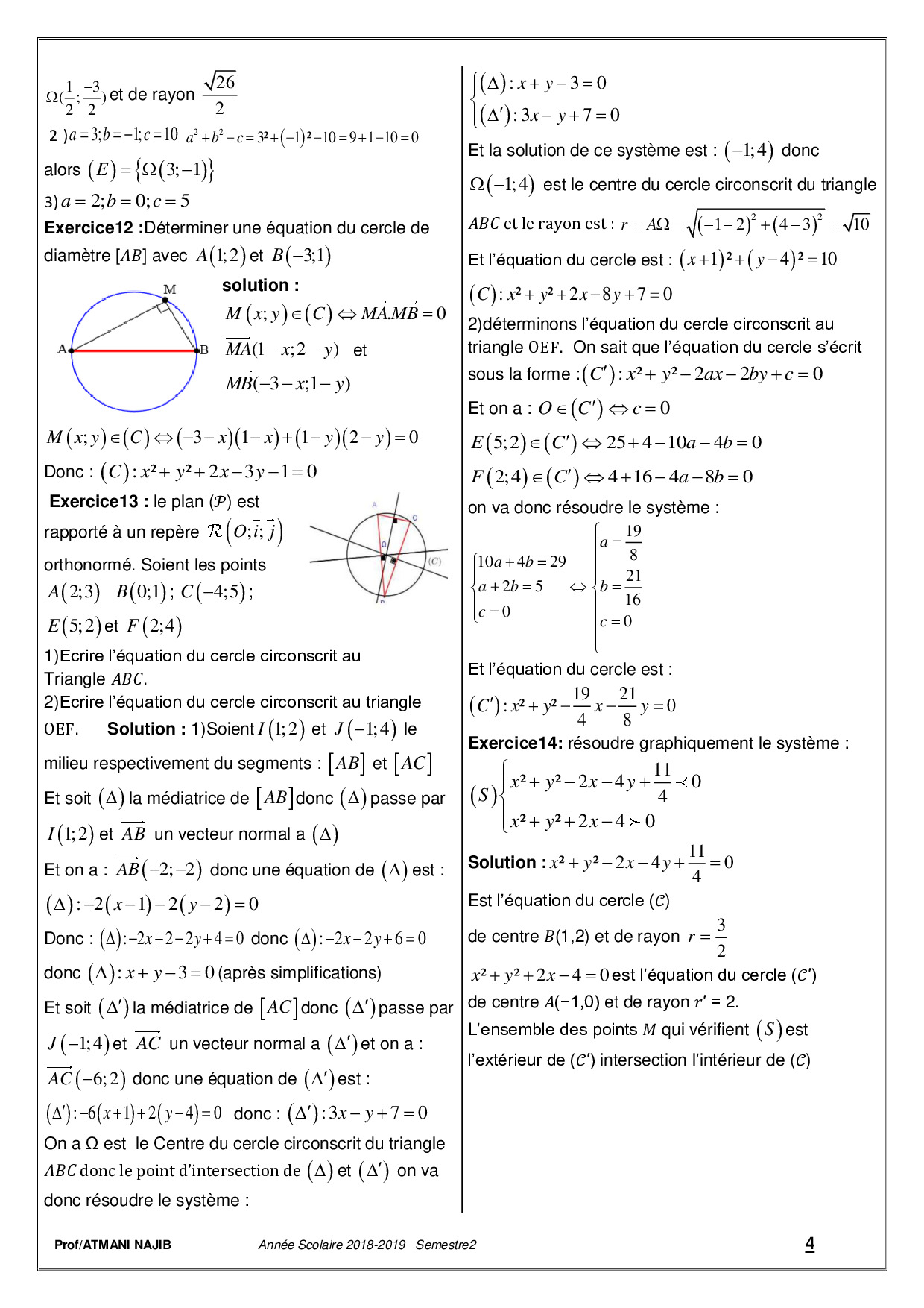 Étude analytique du cercle - Corrigé série d'exercices 1