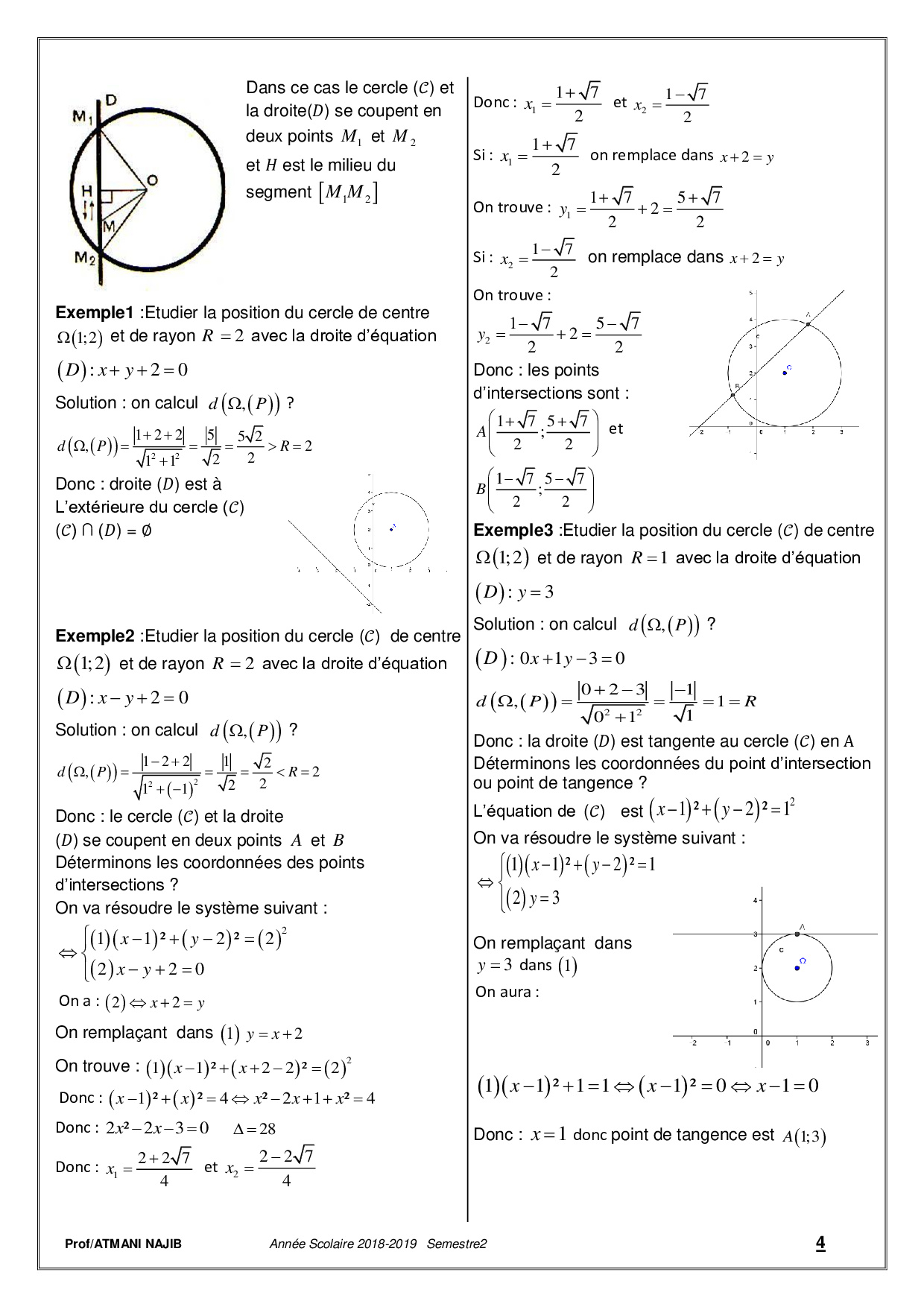 Étude analytique du cercle - Cours et exercices corrigés