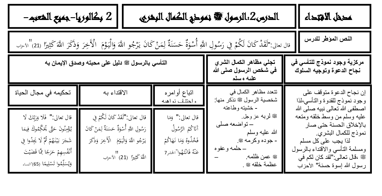 الرسول صلى الله عليه وسلم نموذج الكمال البشري - ملخص الدرس 2