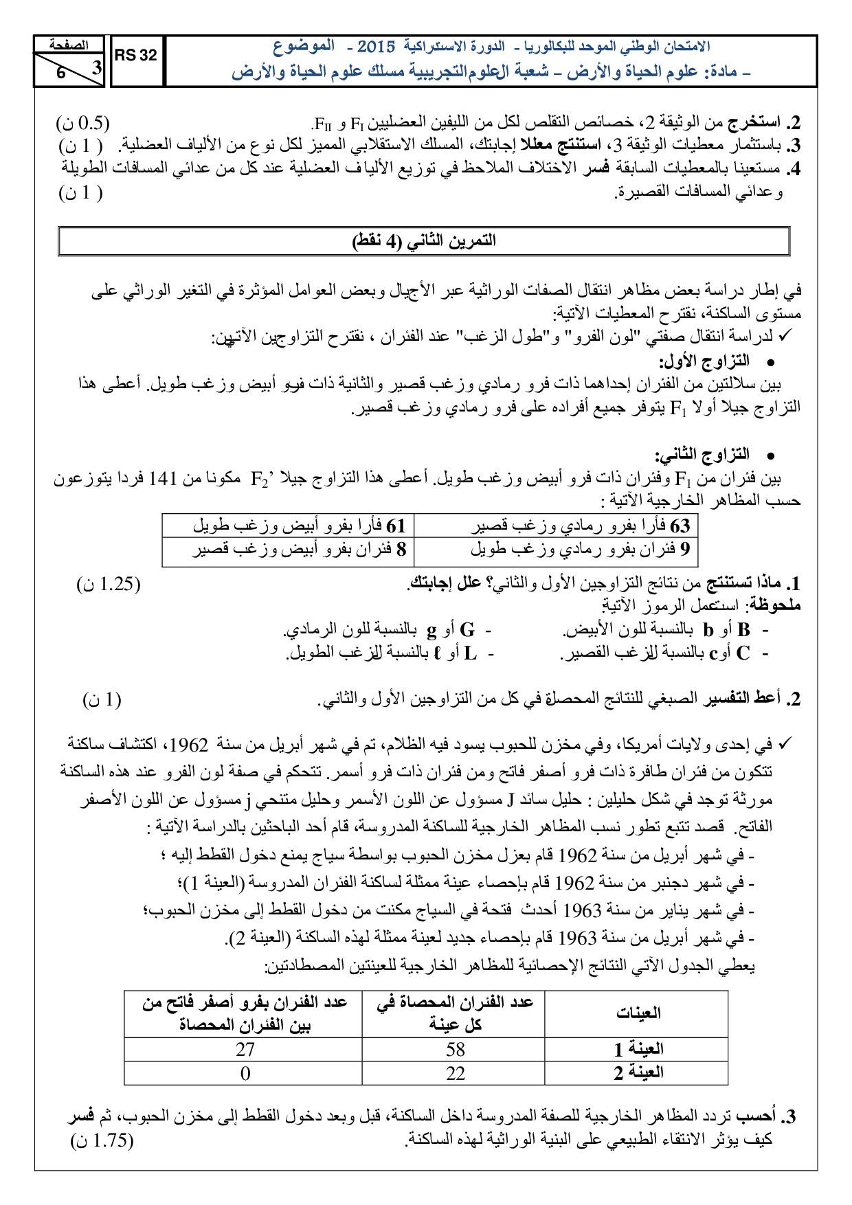 علوم الحياة والأرض (علوم الحياة والأرض) 2015 الدورة الإستدراكية - الموضوع