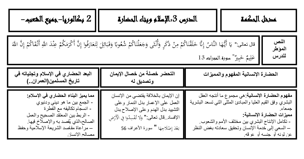 الإسلام وبناء الحضارة الإنسانية - ملخص الدرس 2