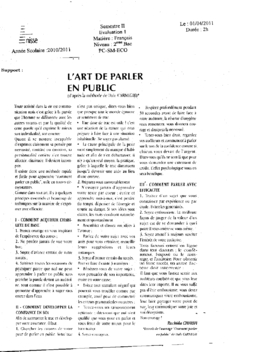 Devoir 1 Modèle 1 - Français 2 BAC Semestre 2