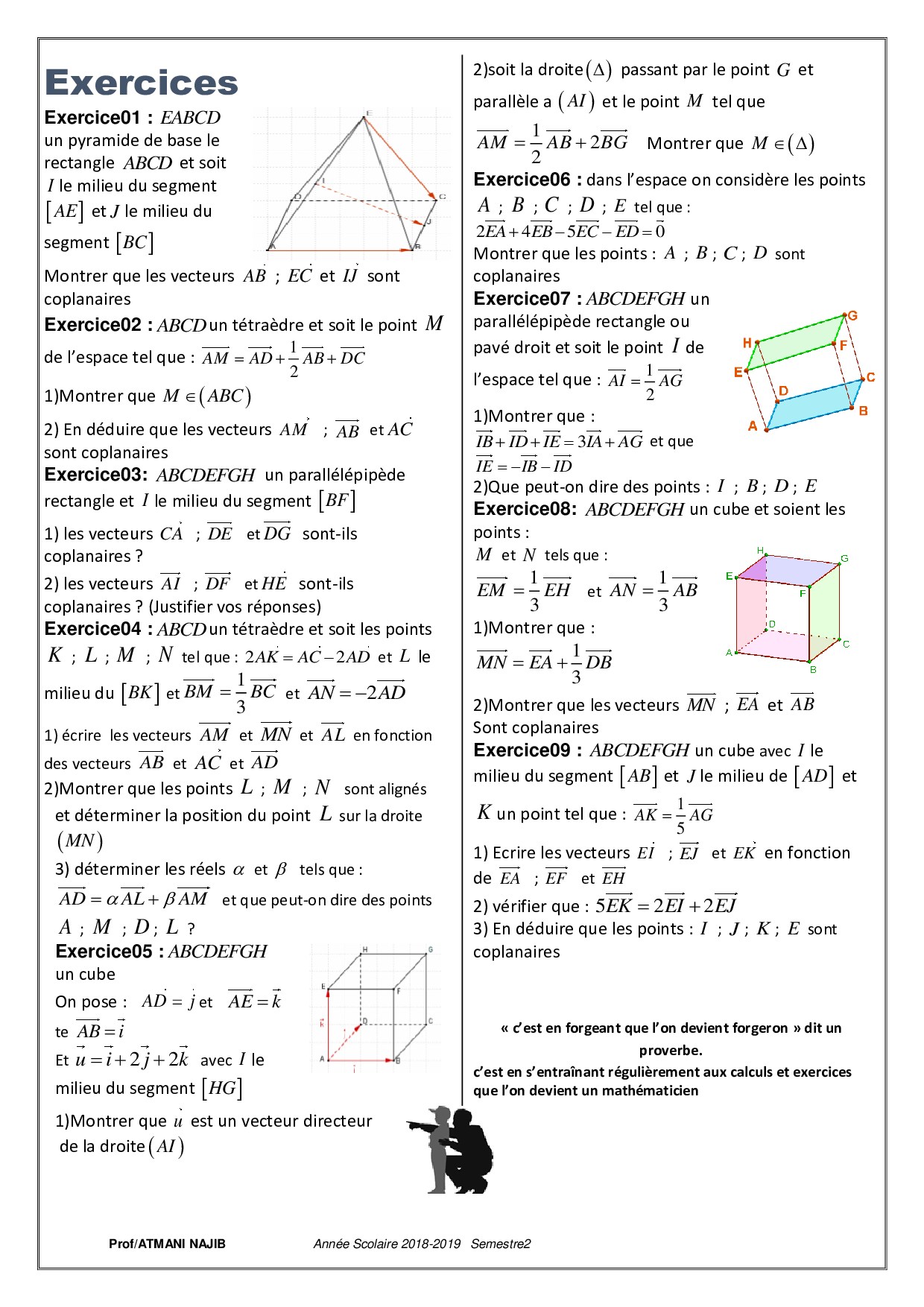 Vecteurs de l’espace - Exercices non corrigés 1