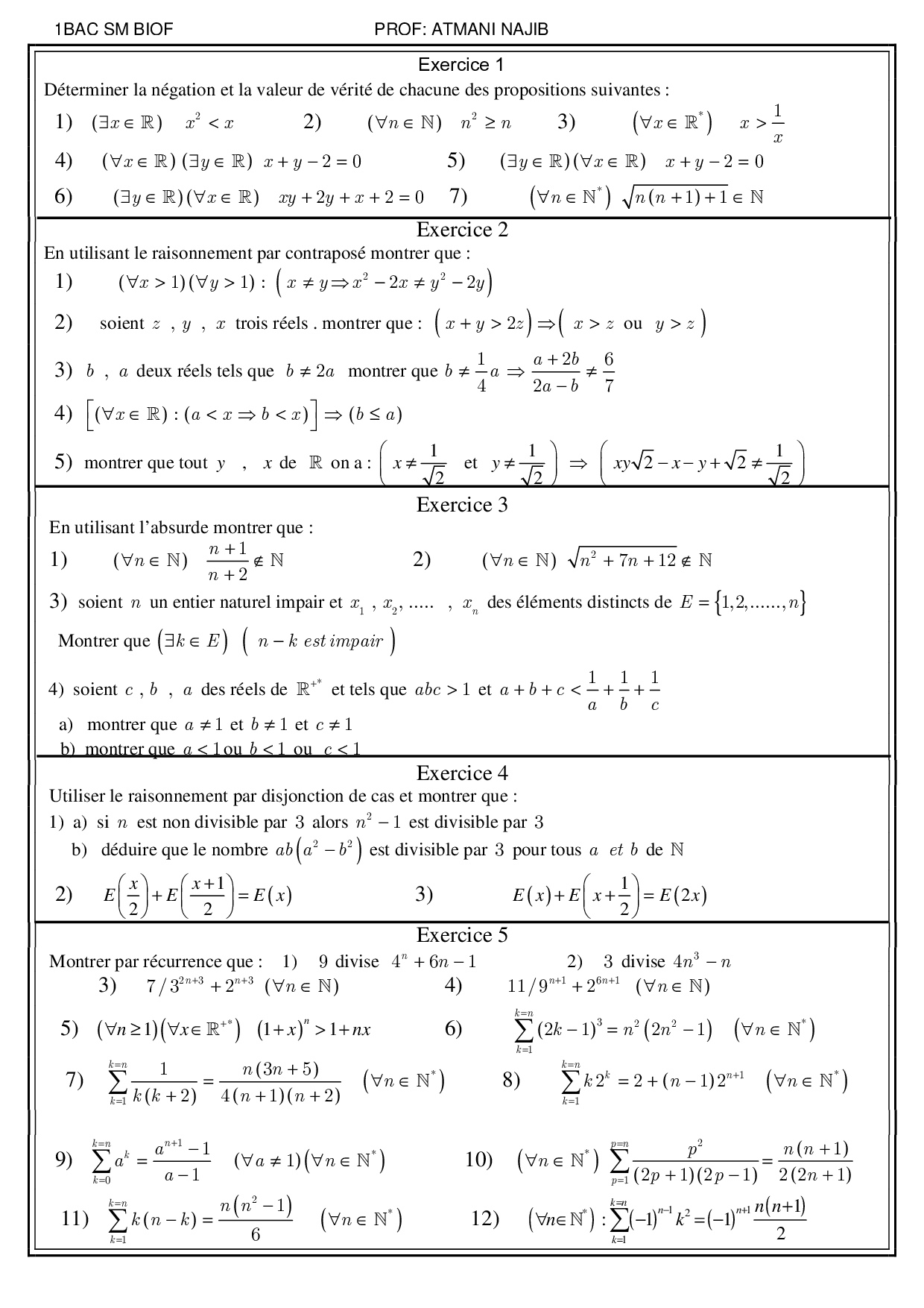 Mathématiques 1er BAC Sciences Mathématiques BIOF