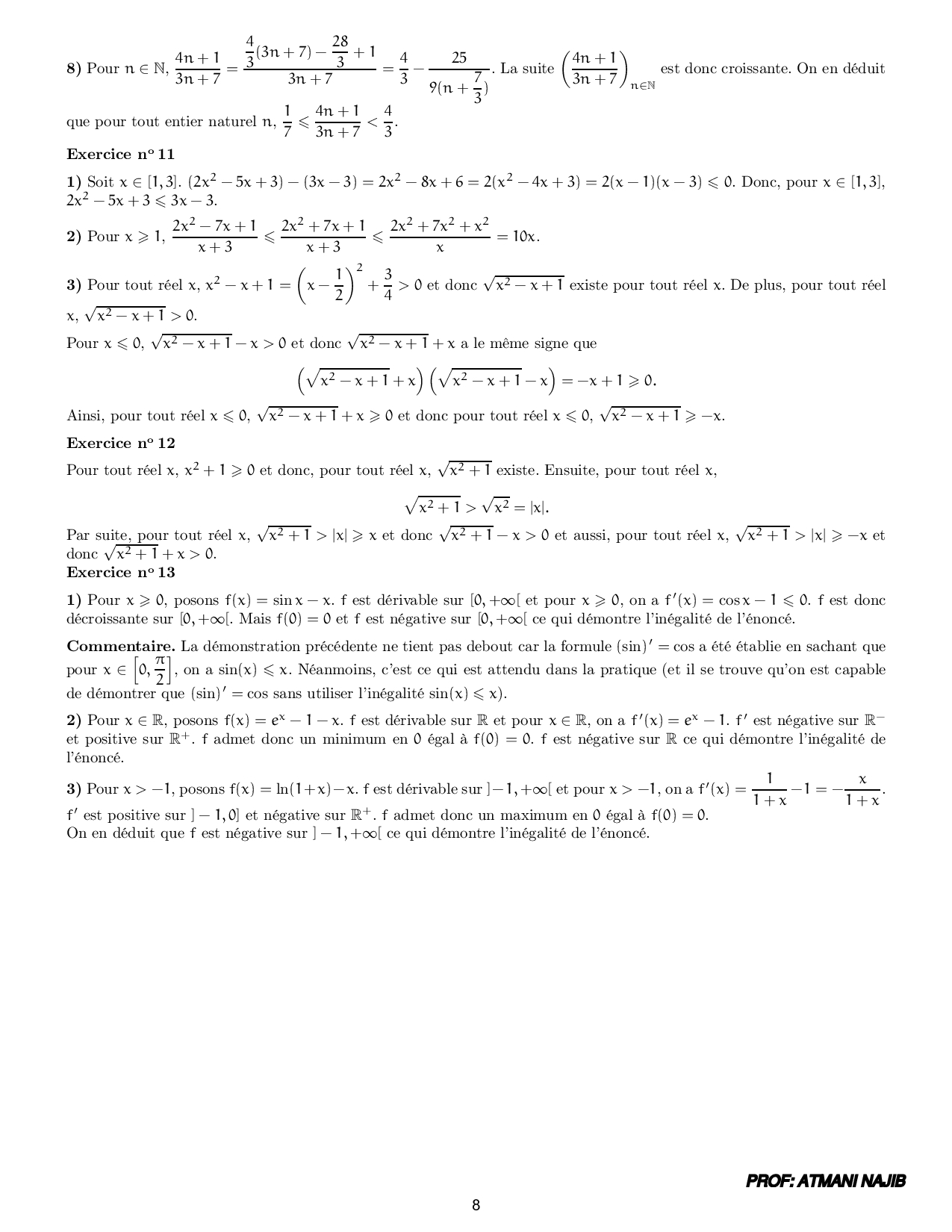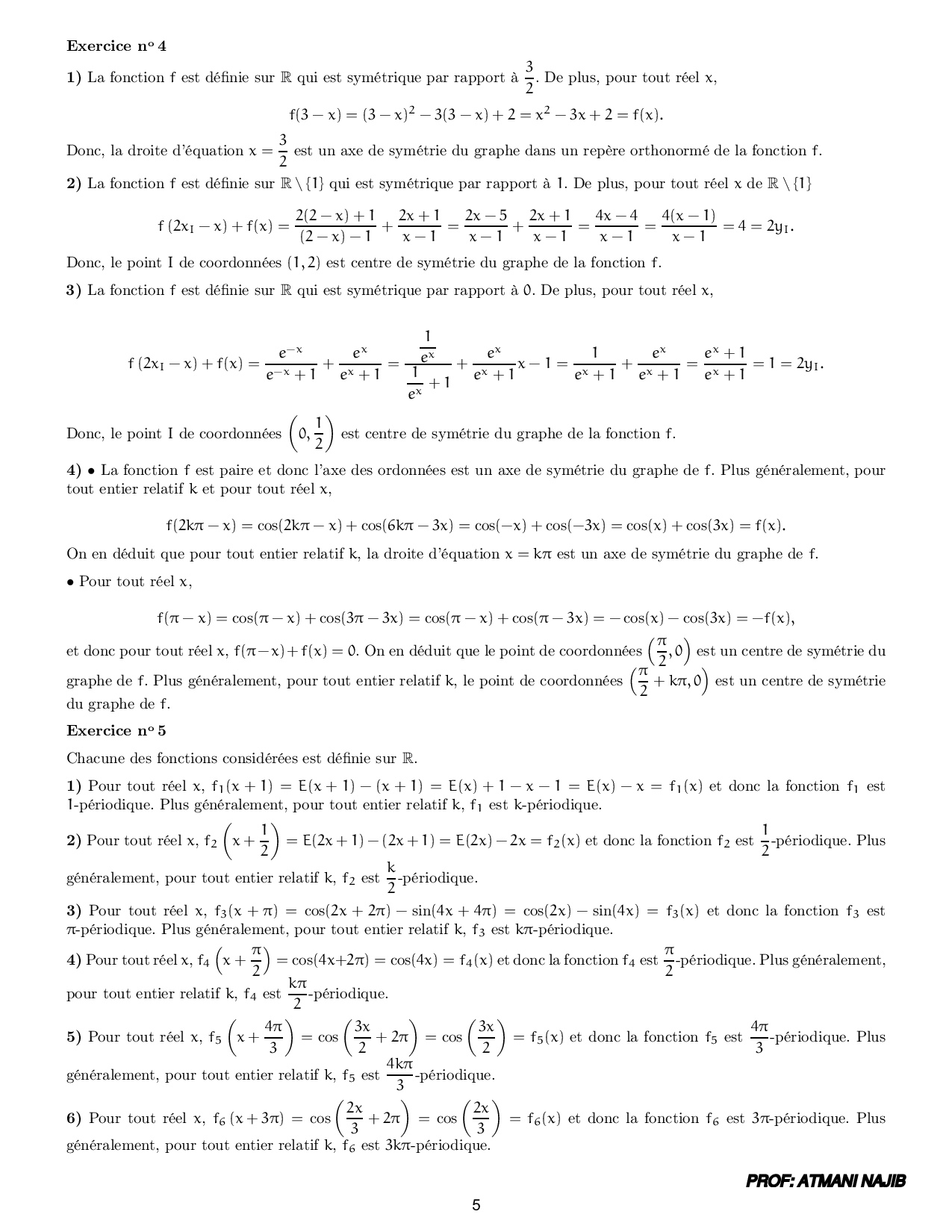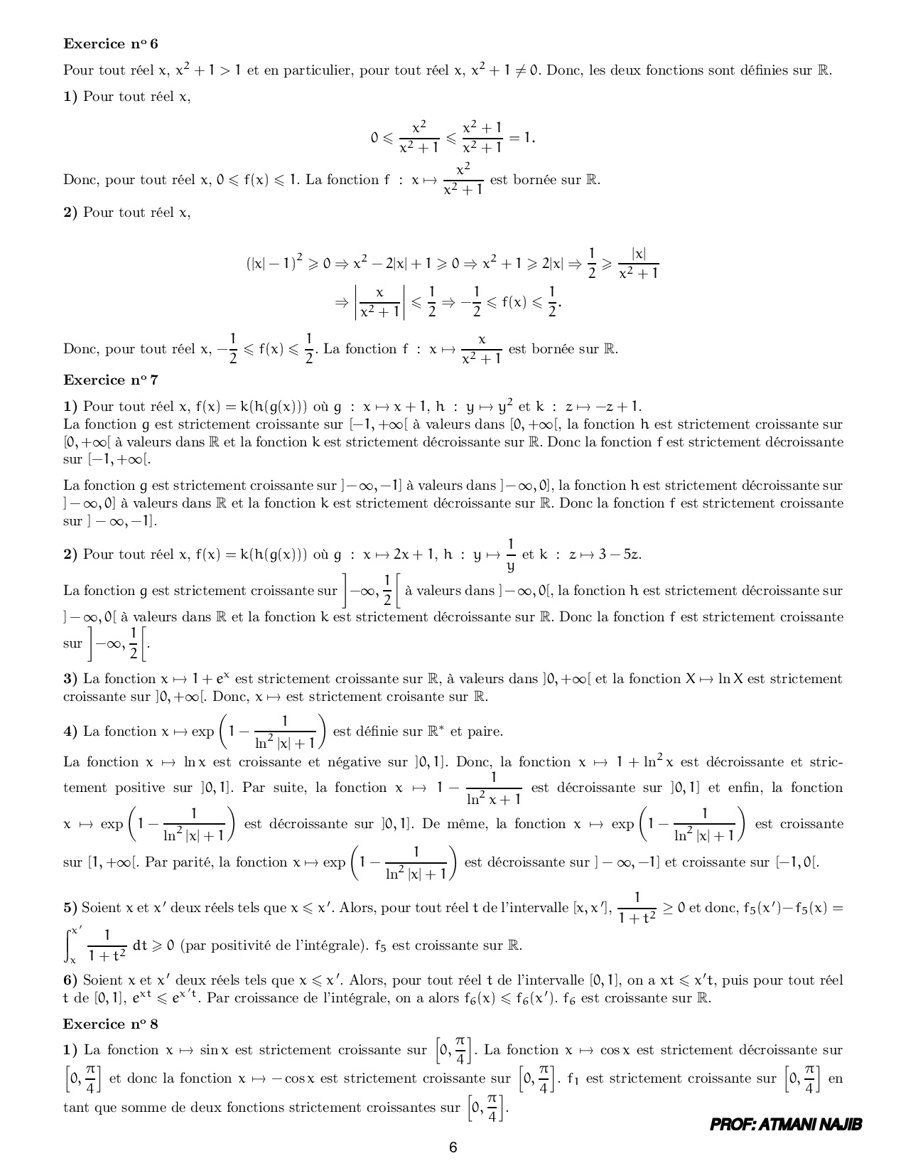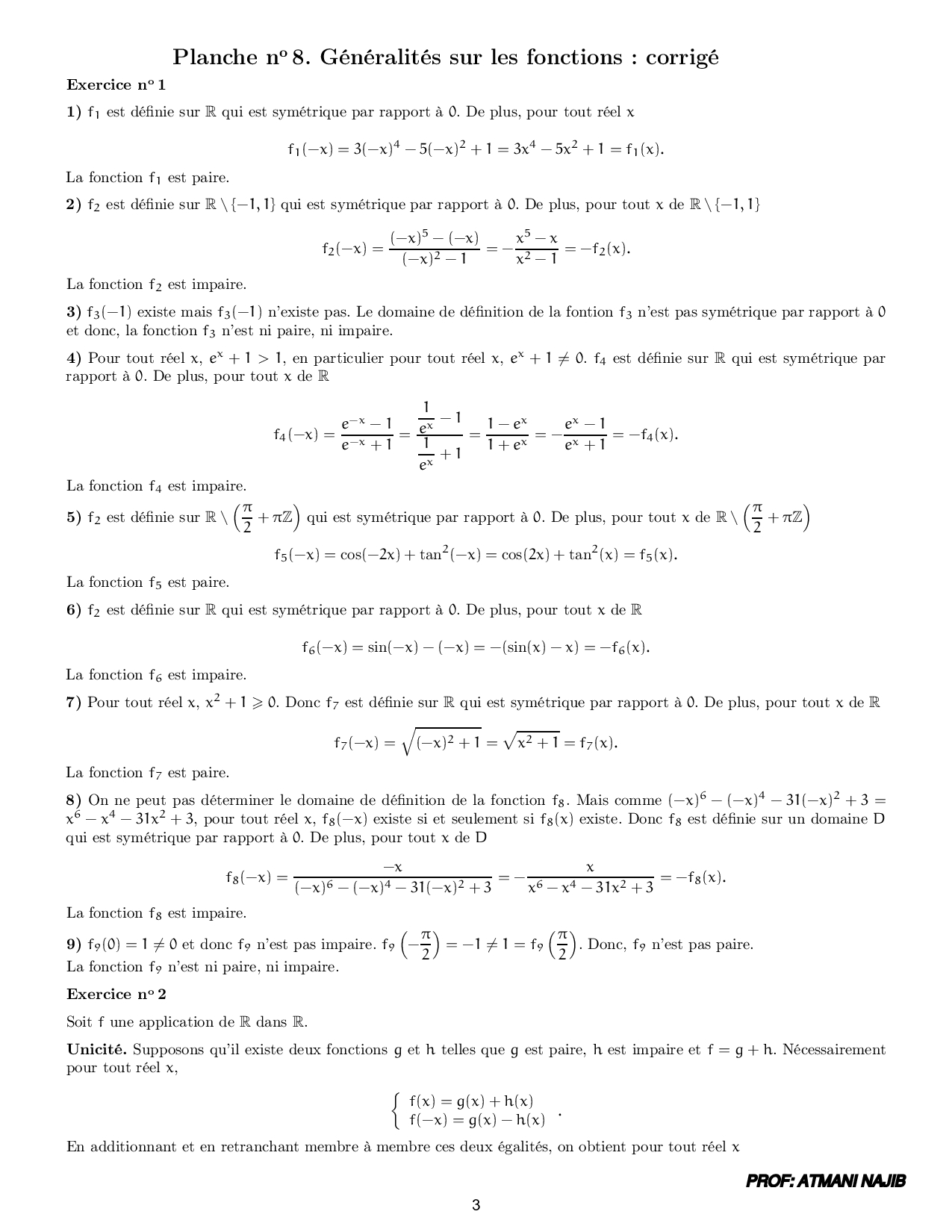 Généralités sur les fonctions - Corrigé série d'exercices 1