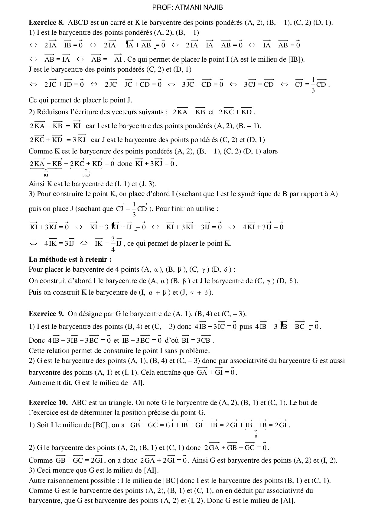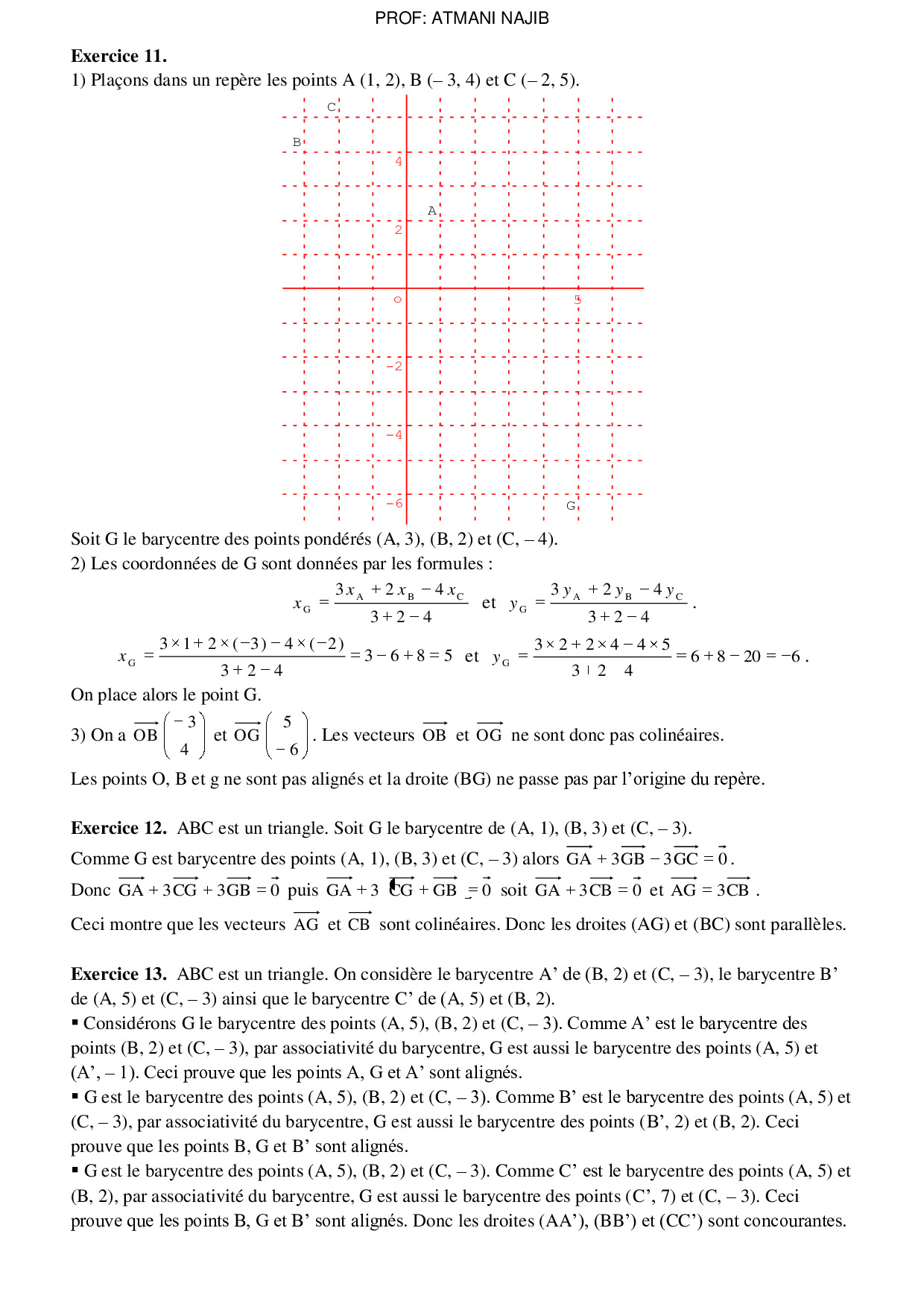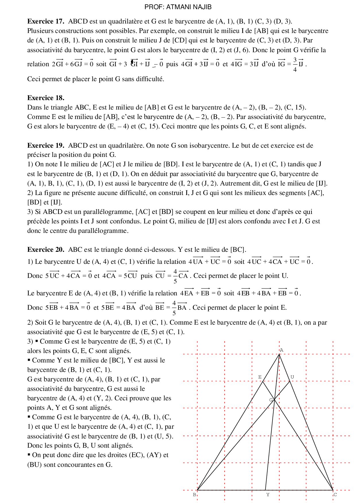 Le barycentre dans le plan - Corrigé série d'exercices 1