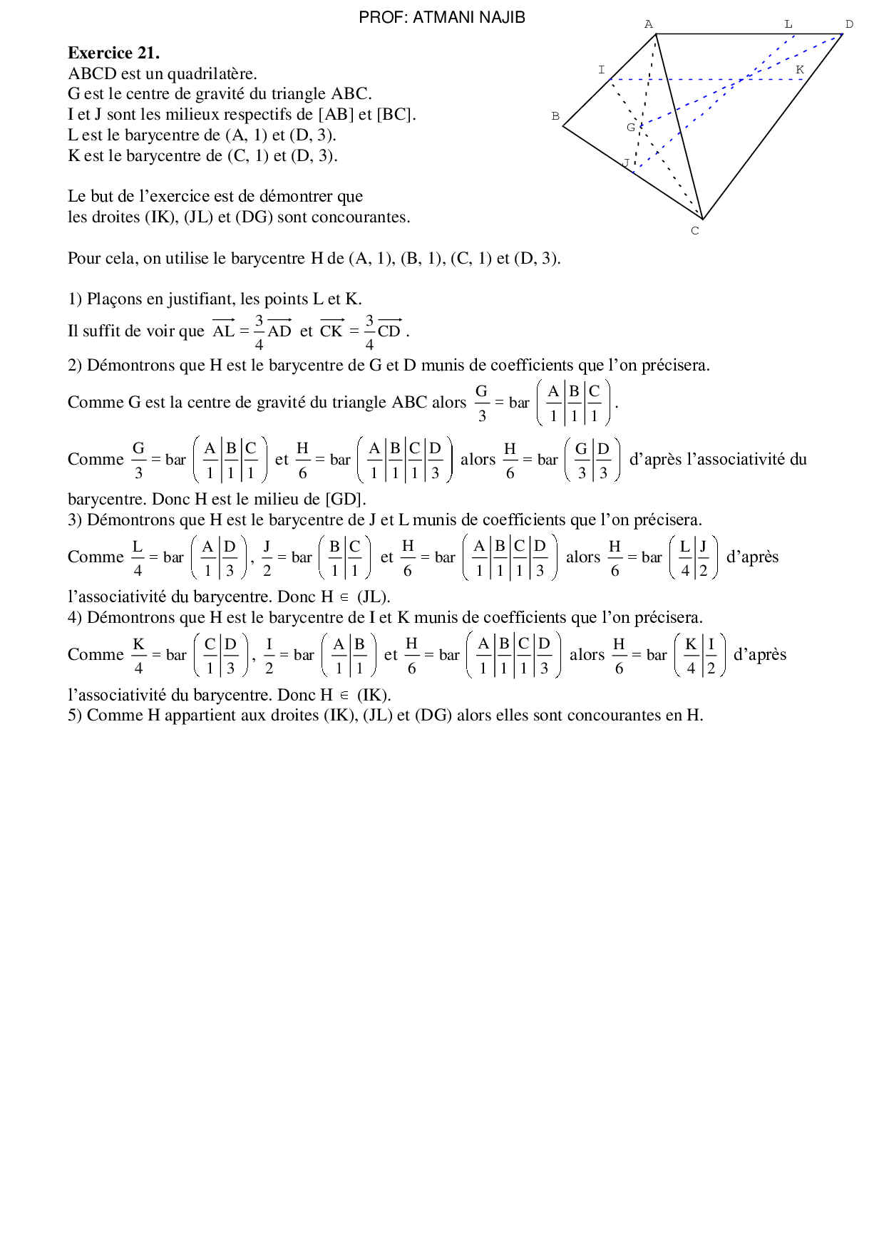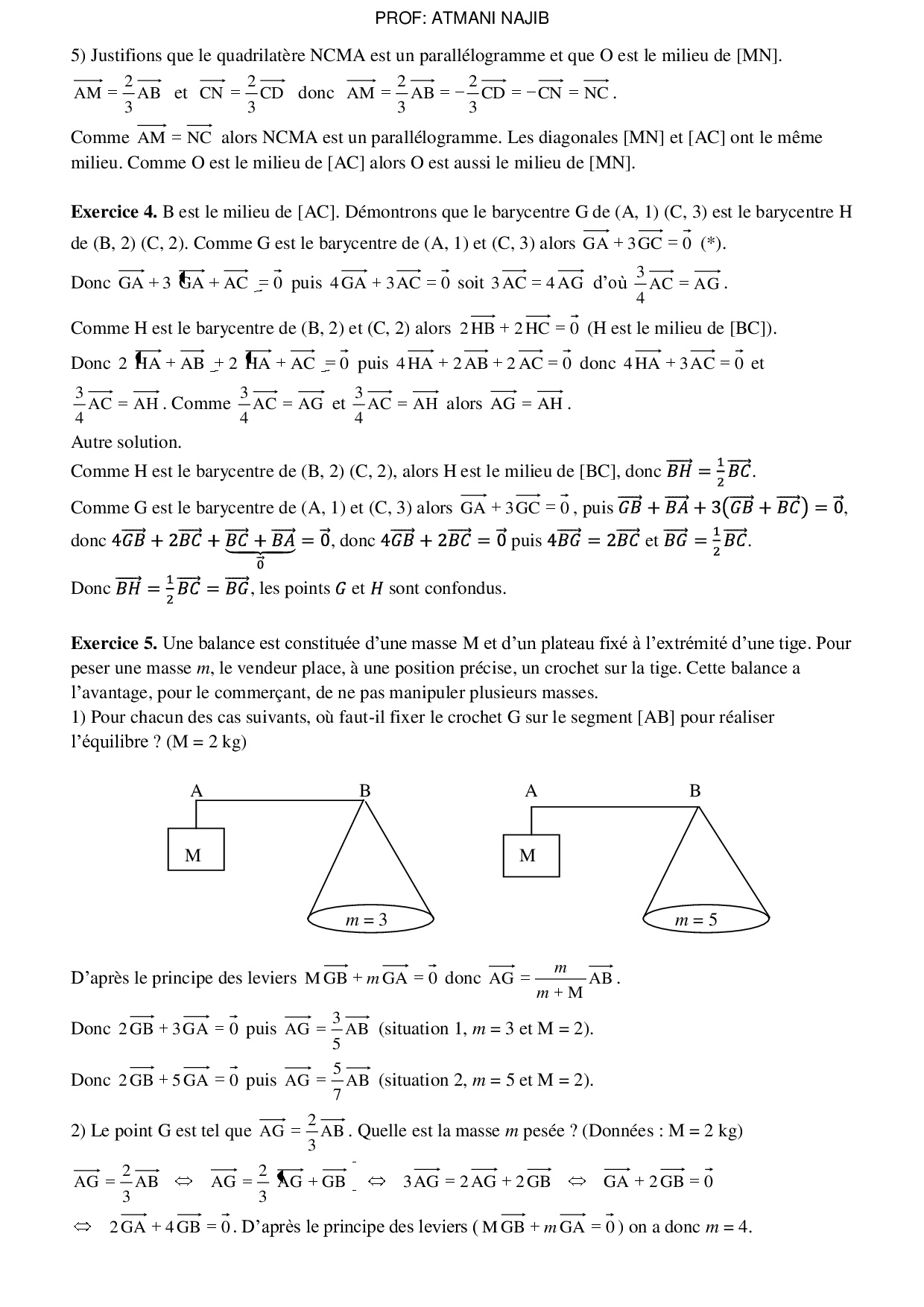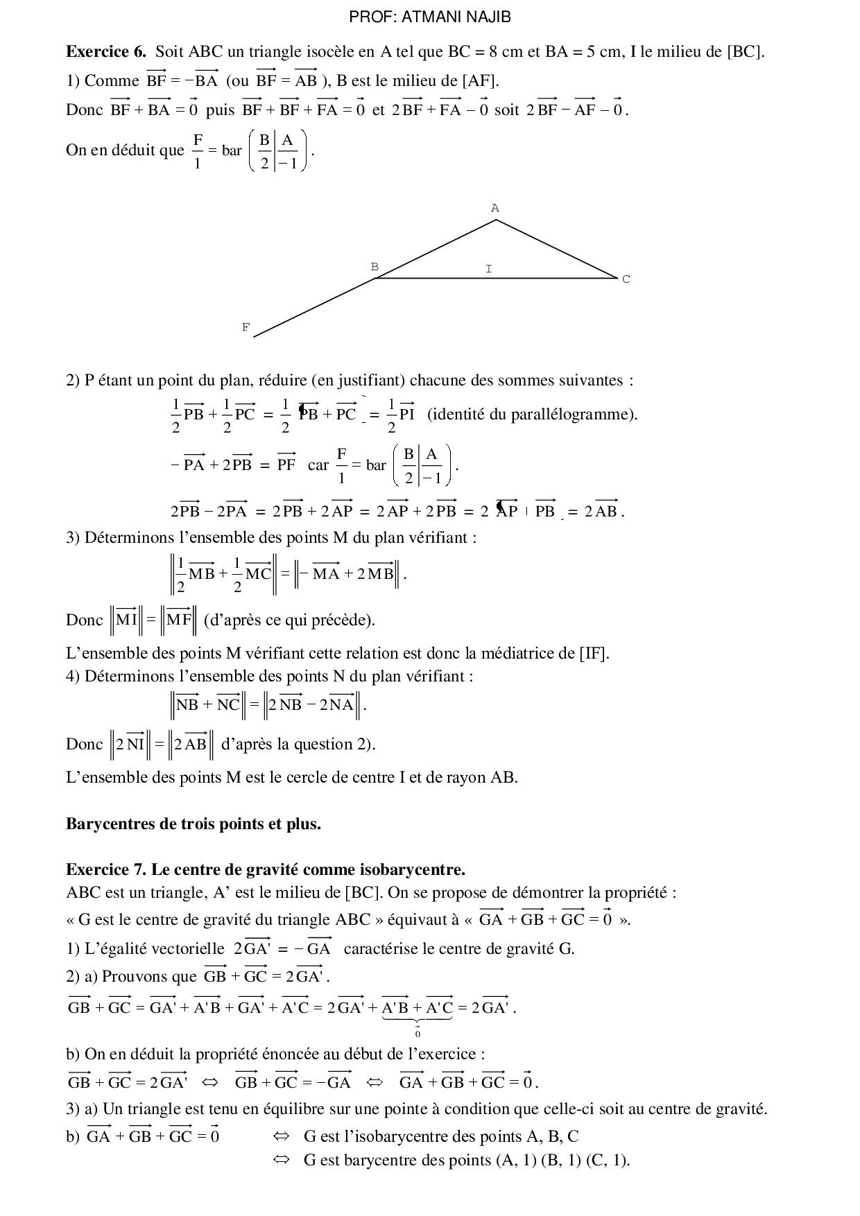 Le barycentre dans le plan - Corrigé série d'exercices 1