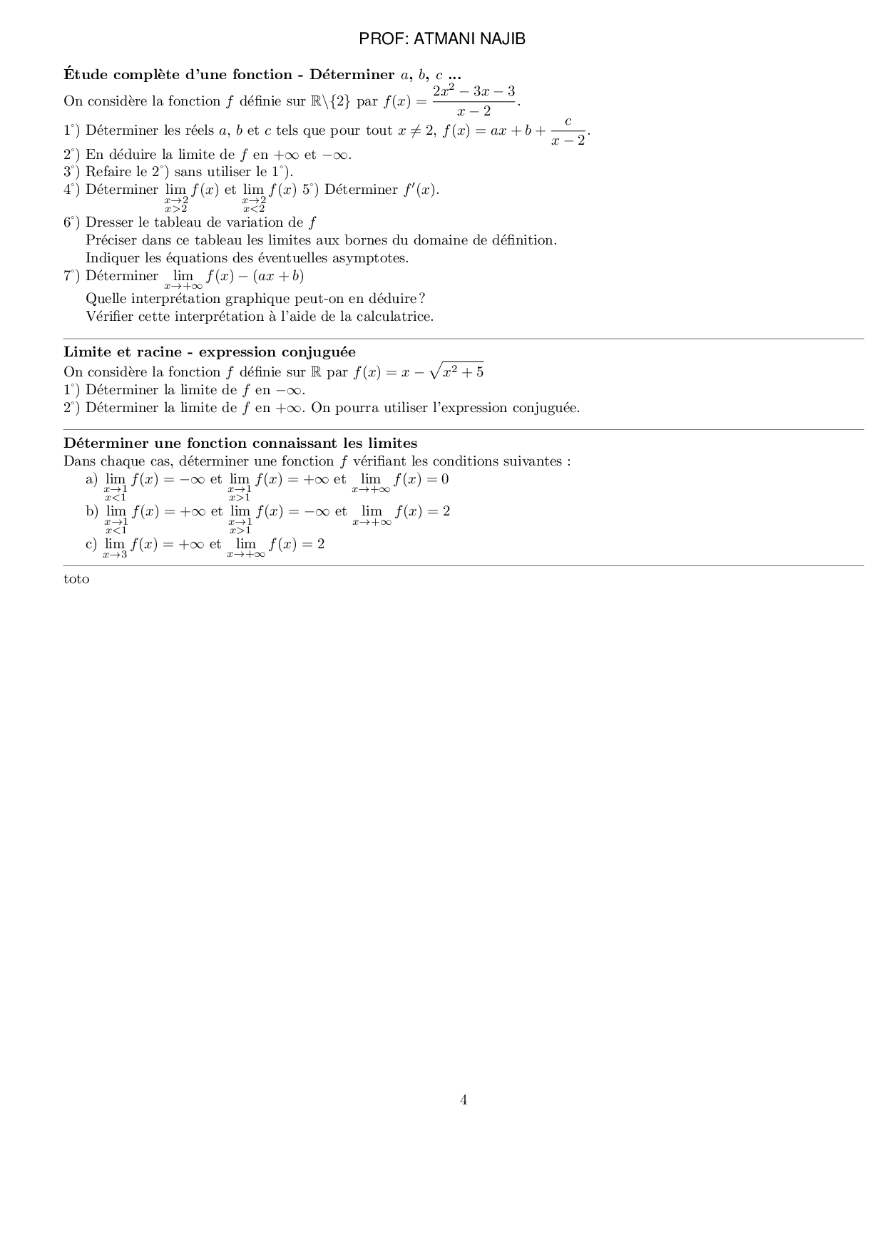 Limites d’une fonction - Exercices non corrigés 3