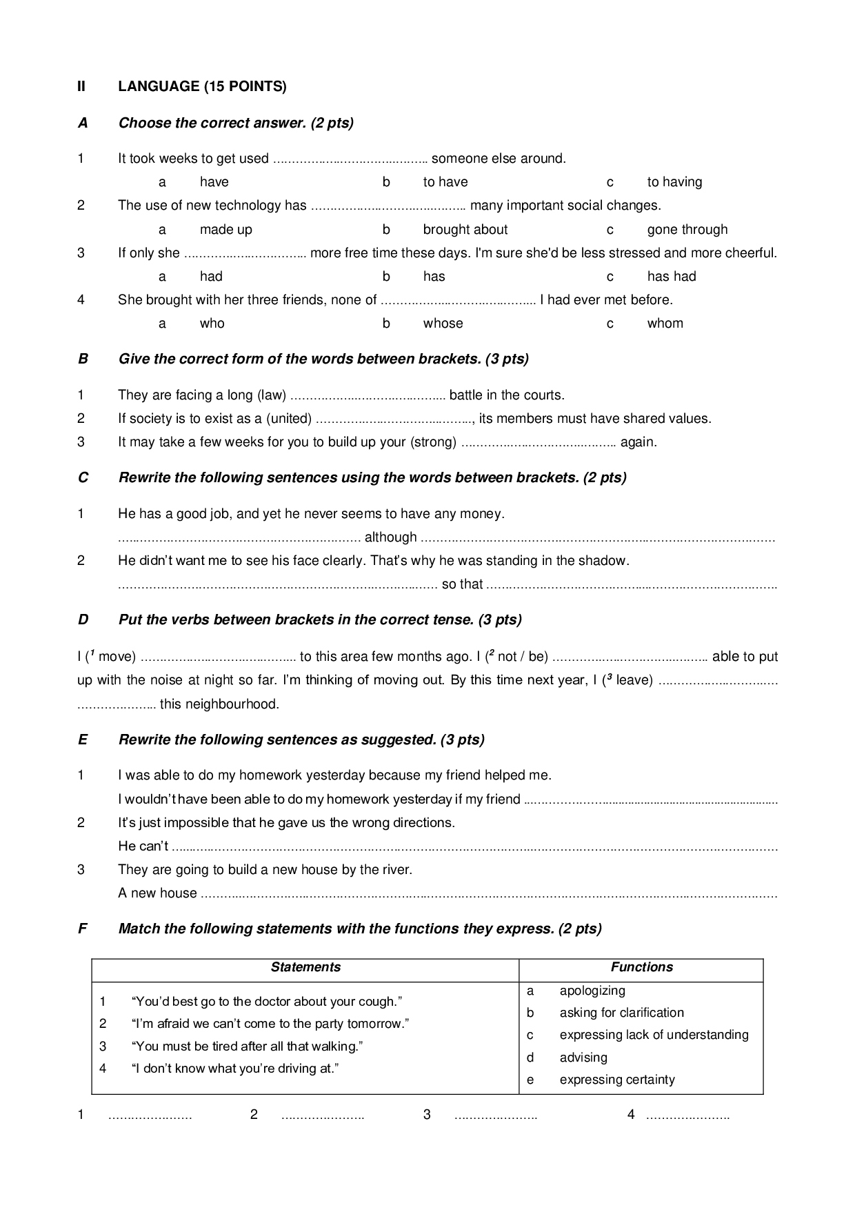 Second term english tests