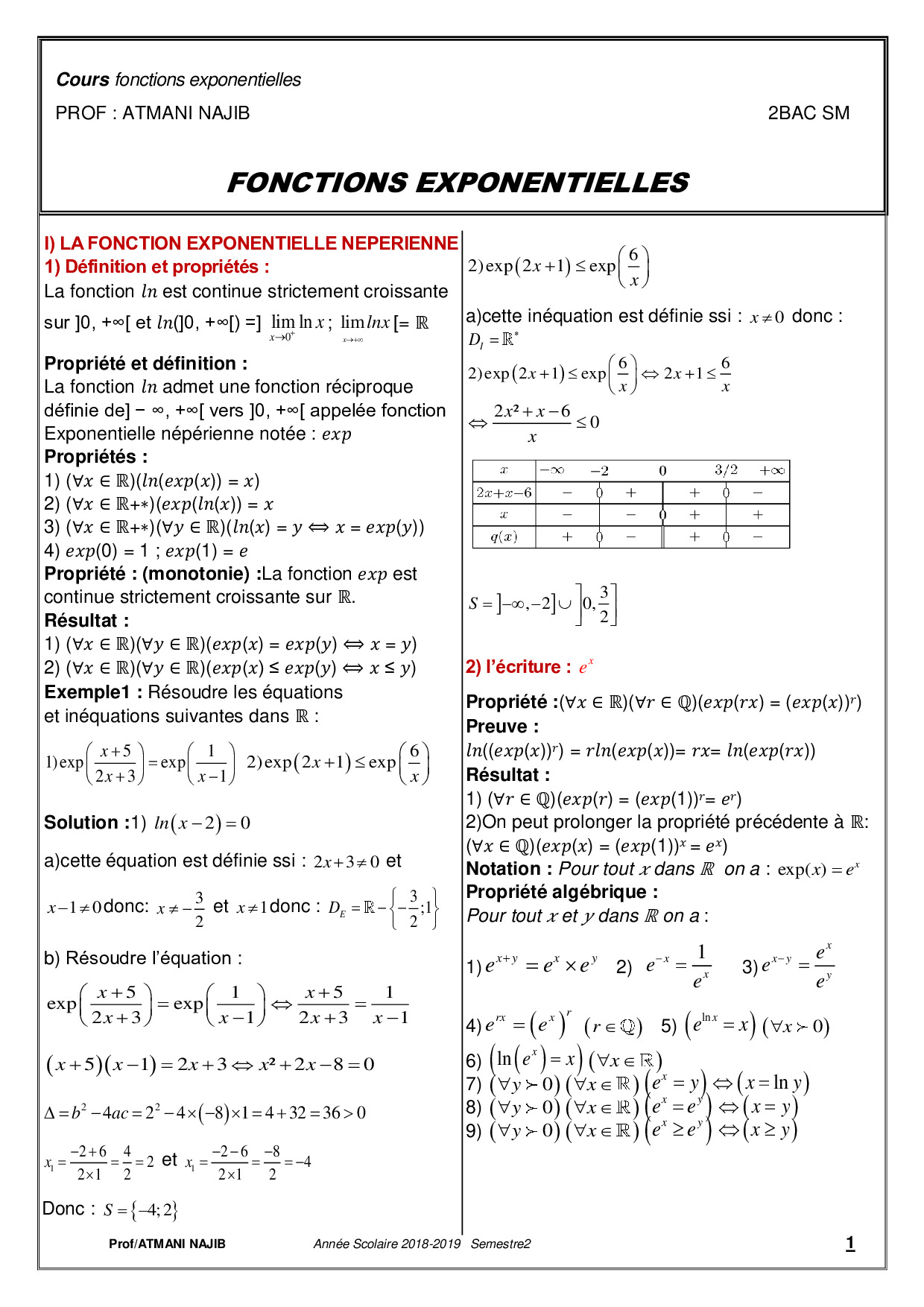 Fonctions exponentielles