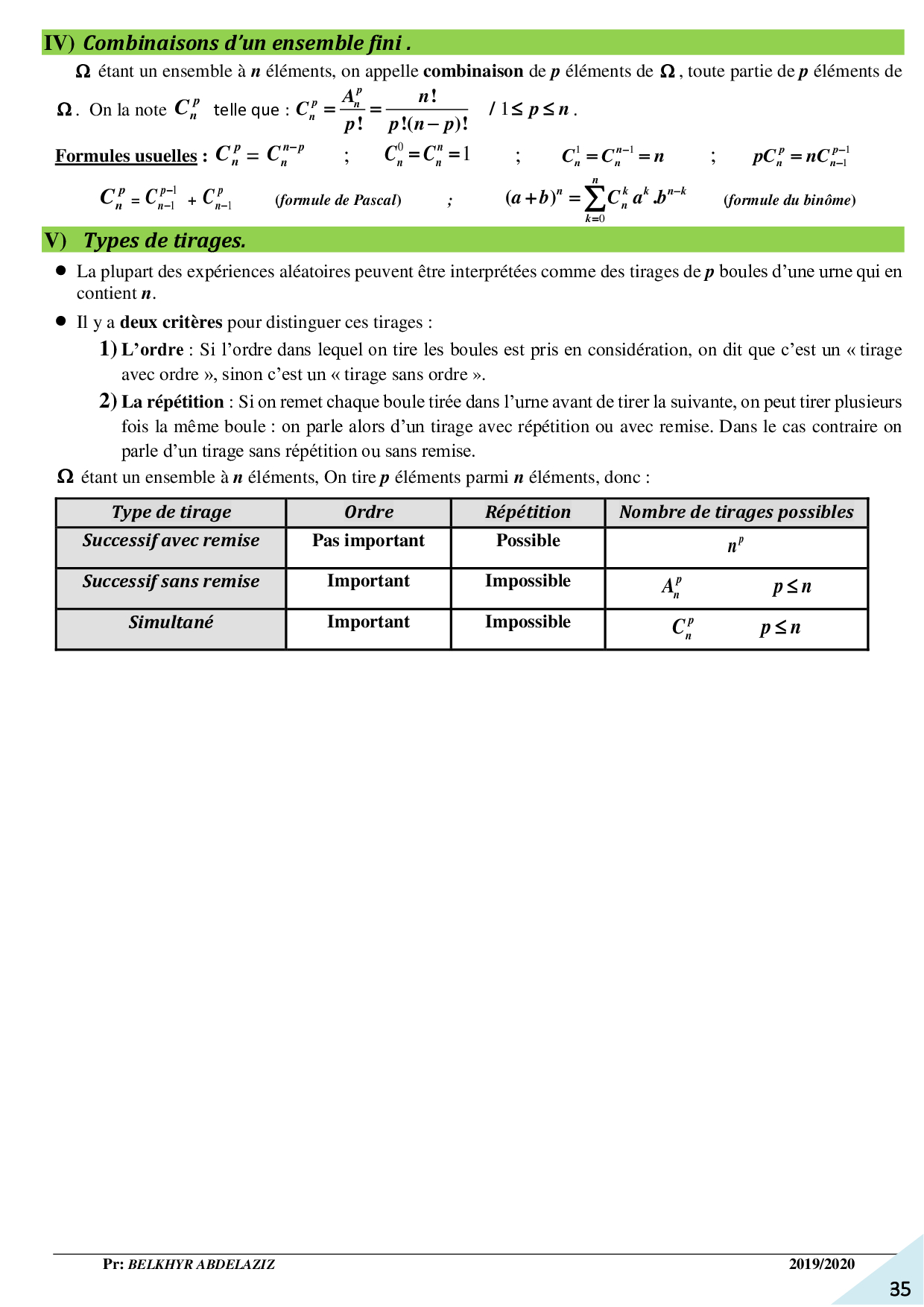 Dénombrement - Résumé de cours 4