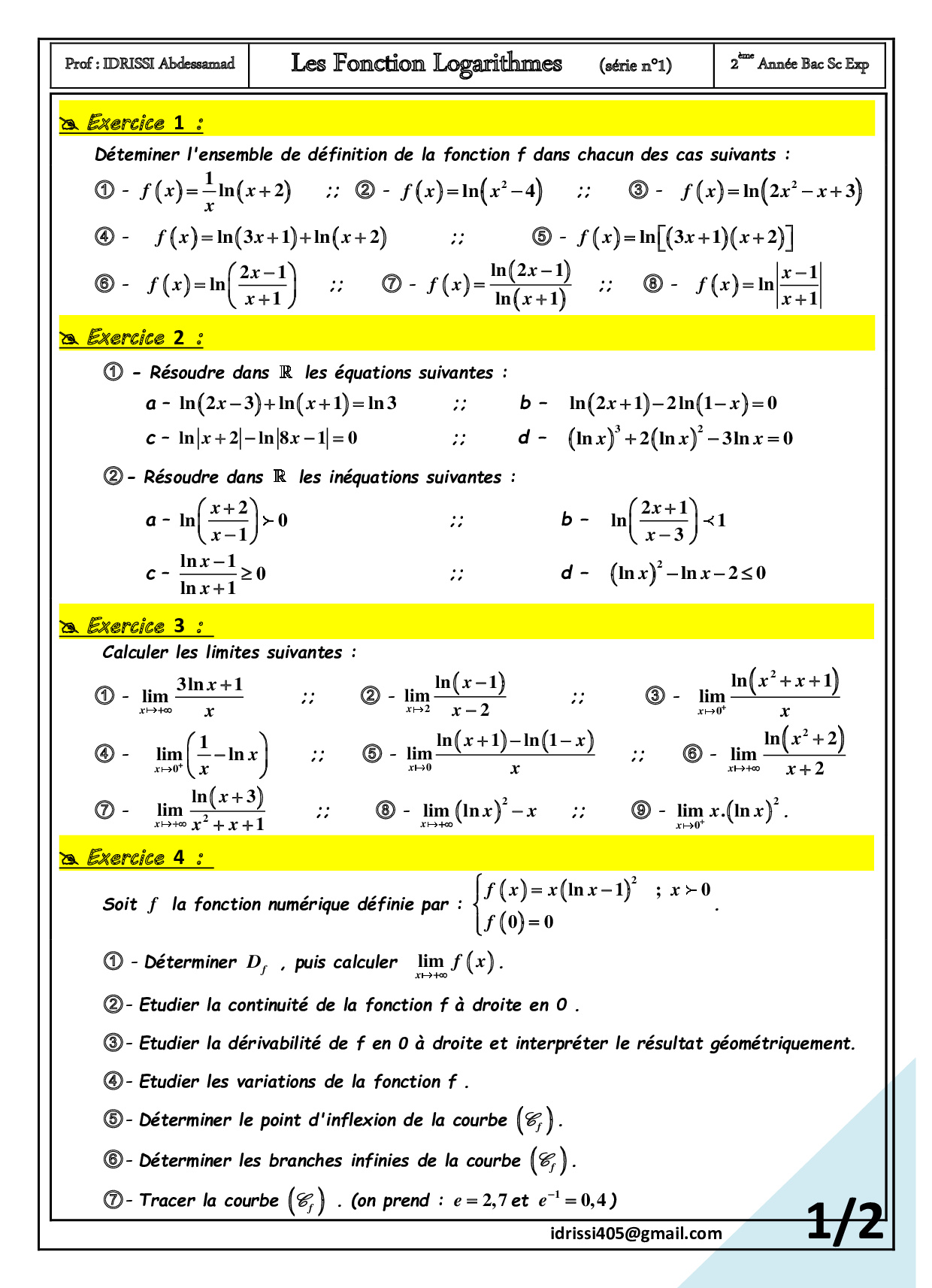 Fonctions logarithmiques - Exercices non corrigés 6