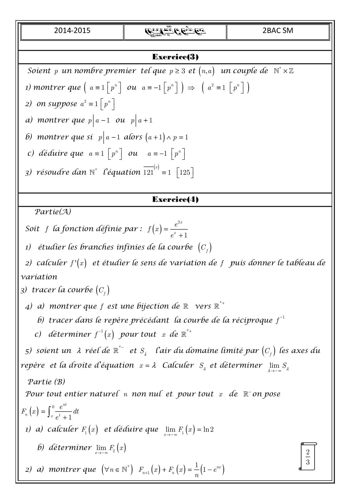 Sujet de préparation 4 - Maths 2 Bac SM