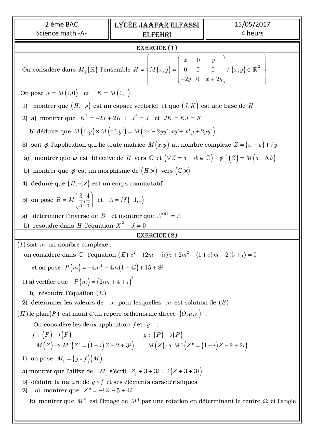 Sujet de préparation 8 - Maths 2 Bac SM