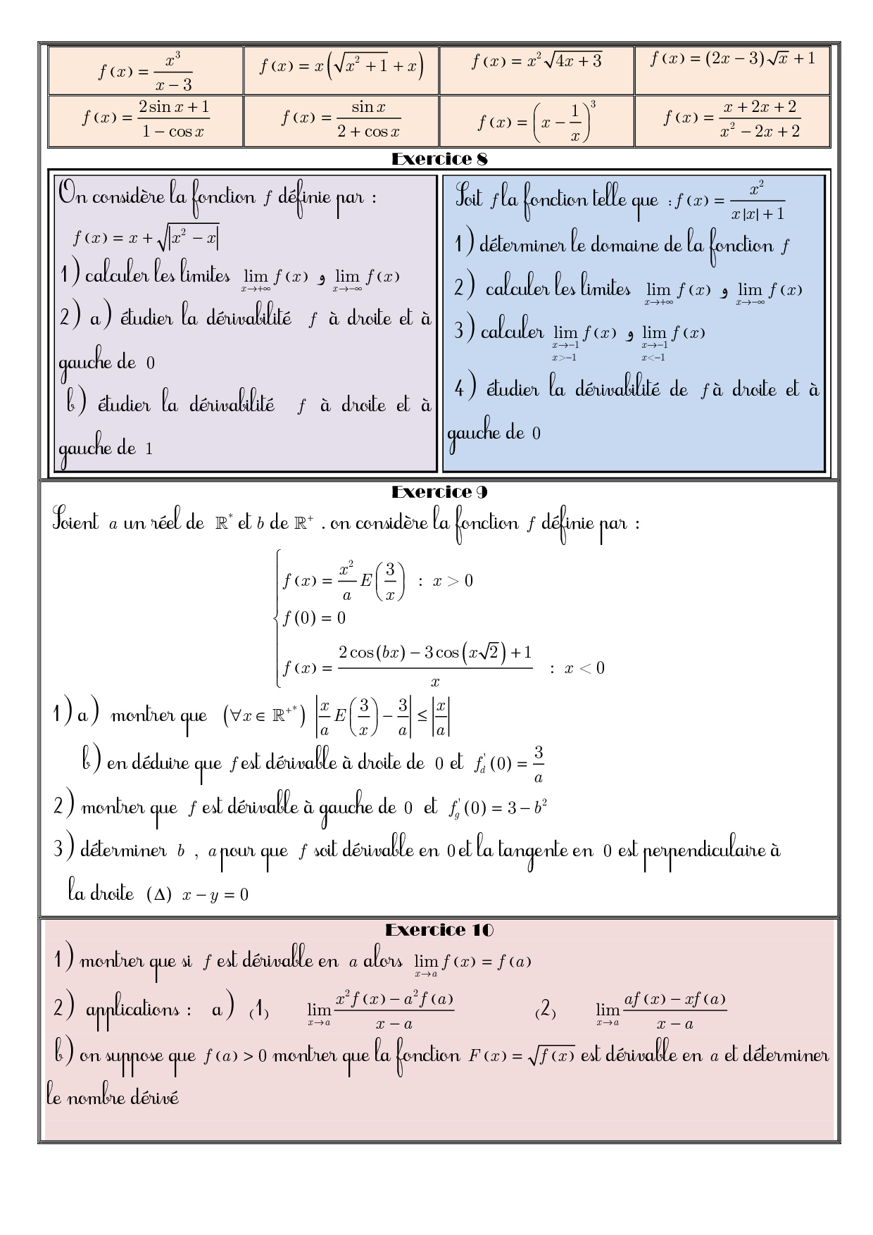 La dérivation - Exercices non corrigés 1