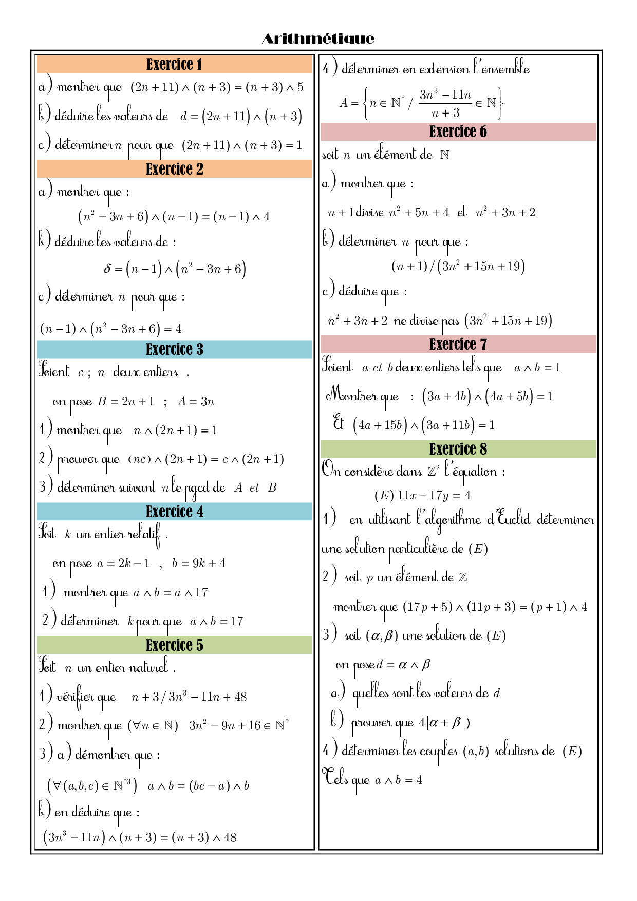Arithmétique dans Z - Exercices non corrigés 2