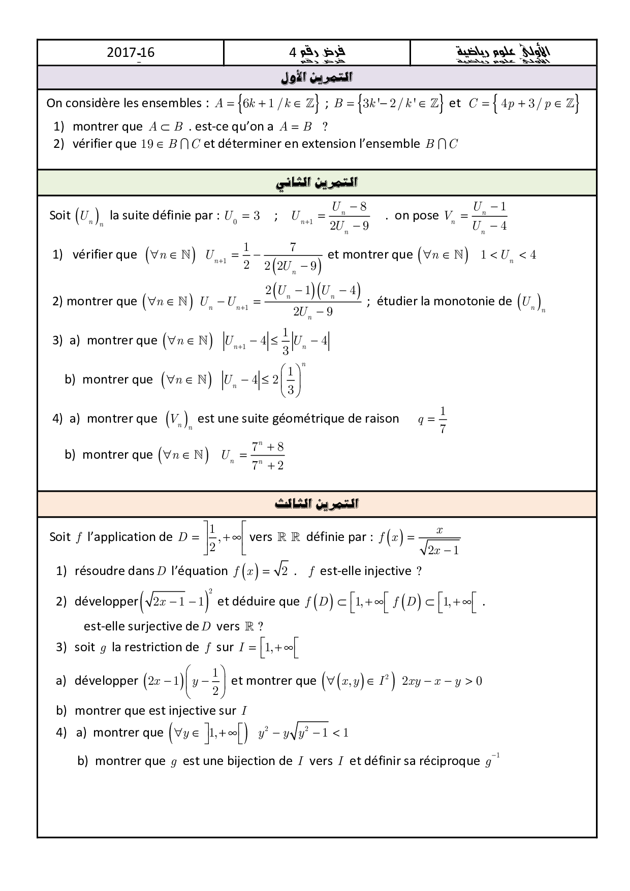 Devoir 4 Modèle 1 - Mathématiques 1 Bac SM Semestre 1