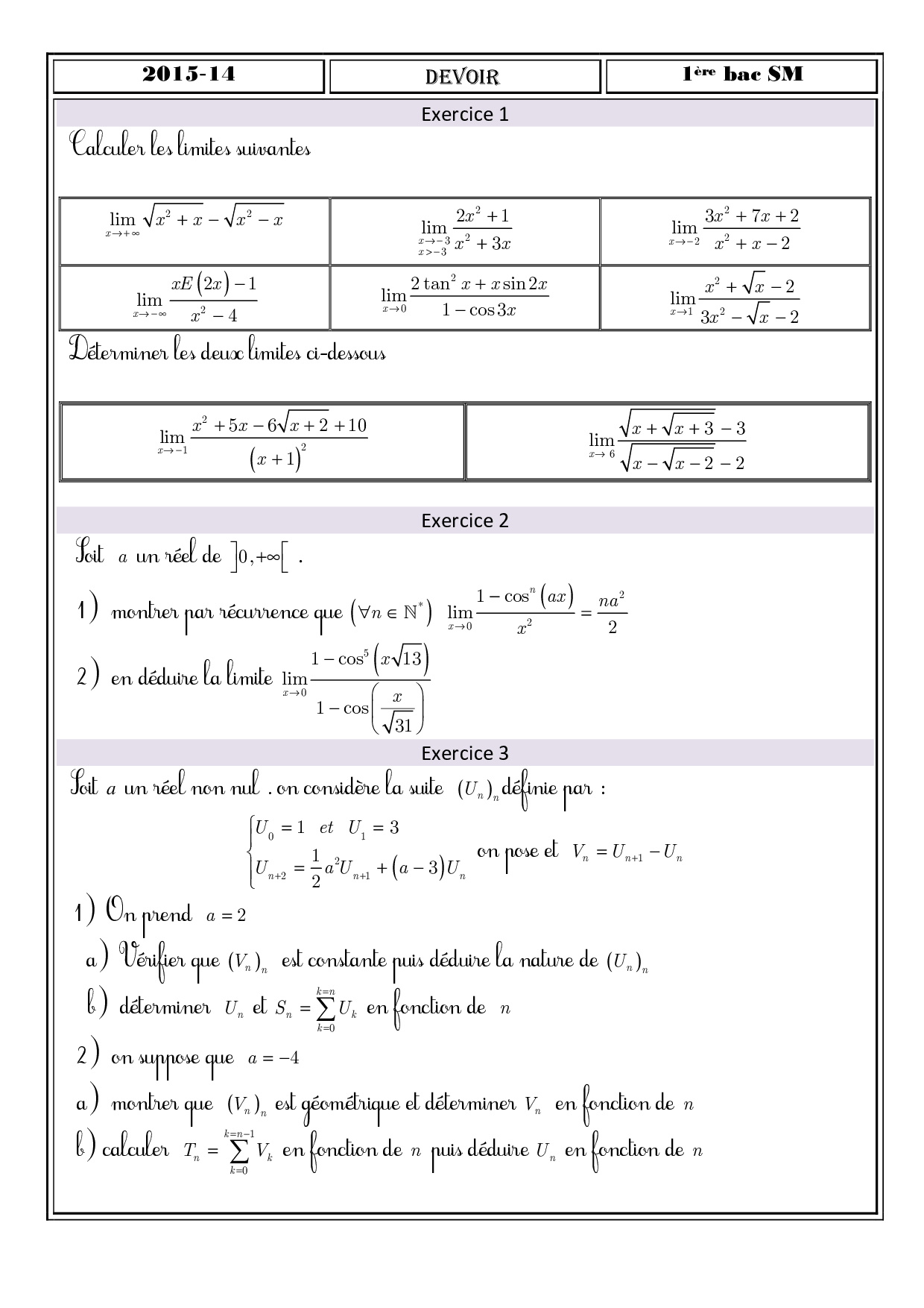 Devoir 1 Modèle 3 - Mathématiques 1 Bac SM Semestre 2