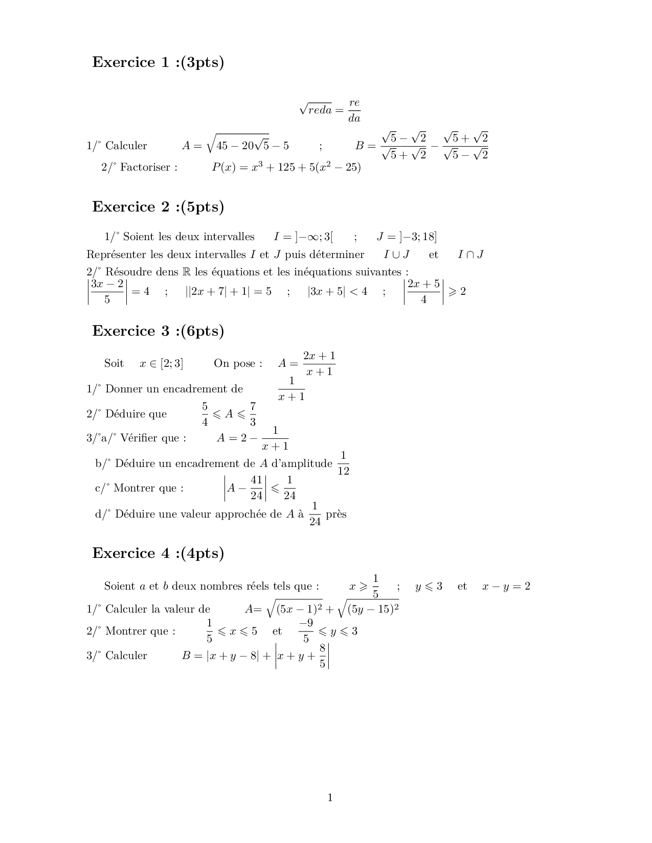 Devoir 3 Modèle 4 - Maths TC Semestre 1