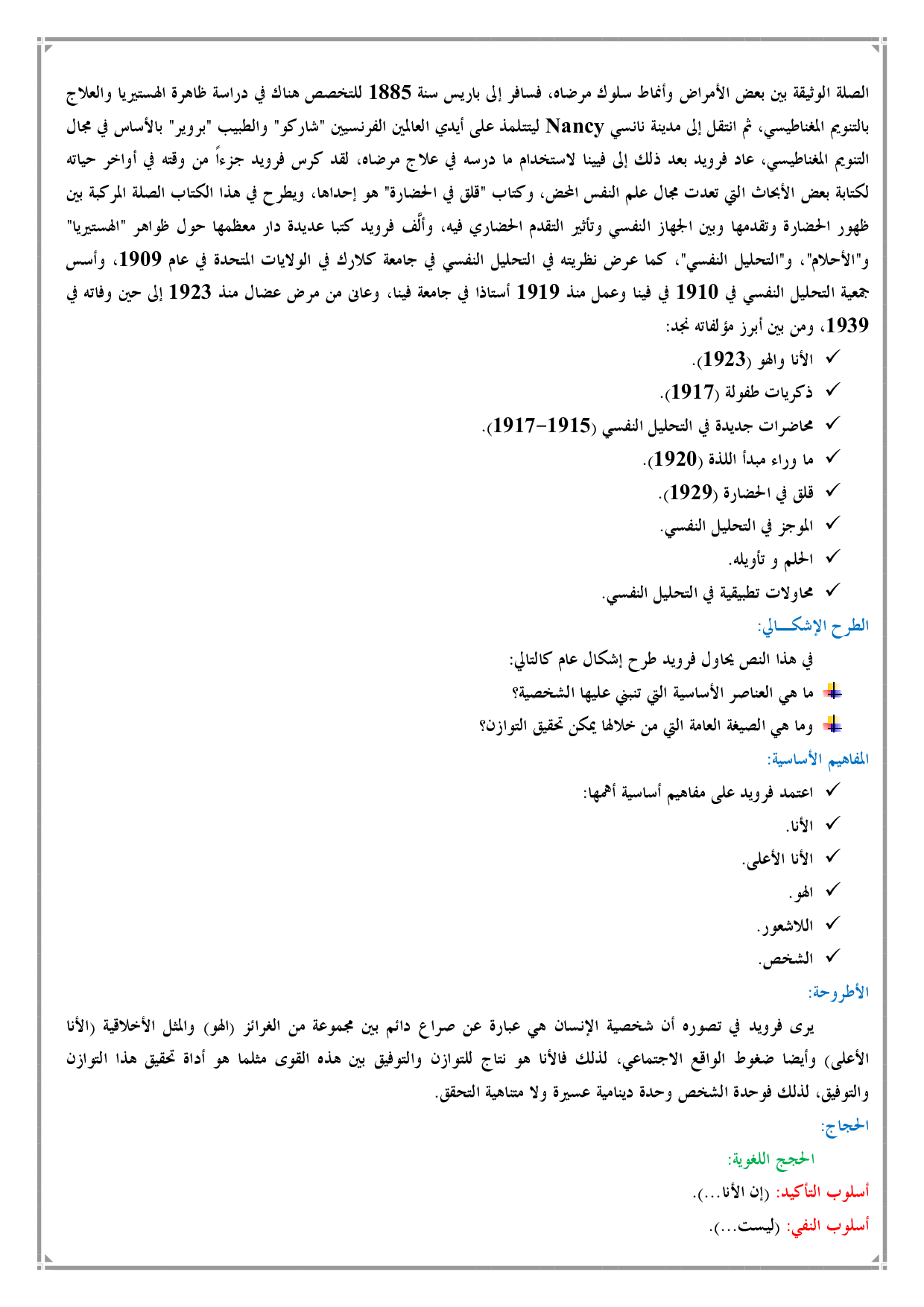 تحليل نص سيغموند فرويد : البنية النفسية الثلاثية للشخصية