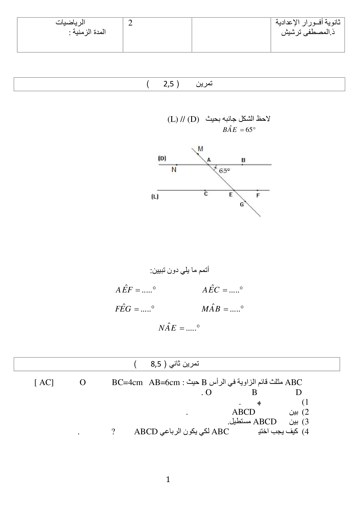 الفرض 2 نموذج 7 - الرياضيات أولى إعدادي الدورة الثانية