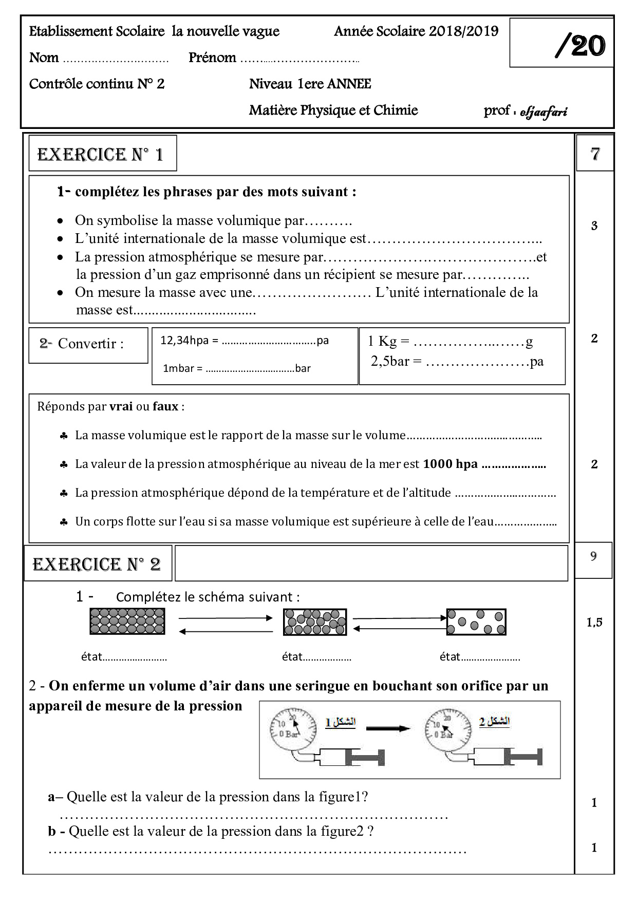 Devoir 2 Modèle 13 - Physique Chimie 1AC Semestre 1