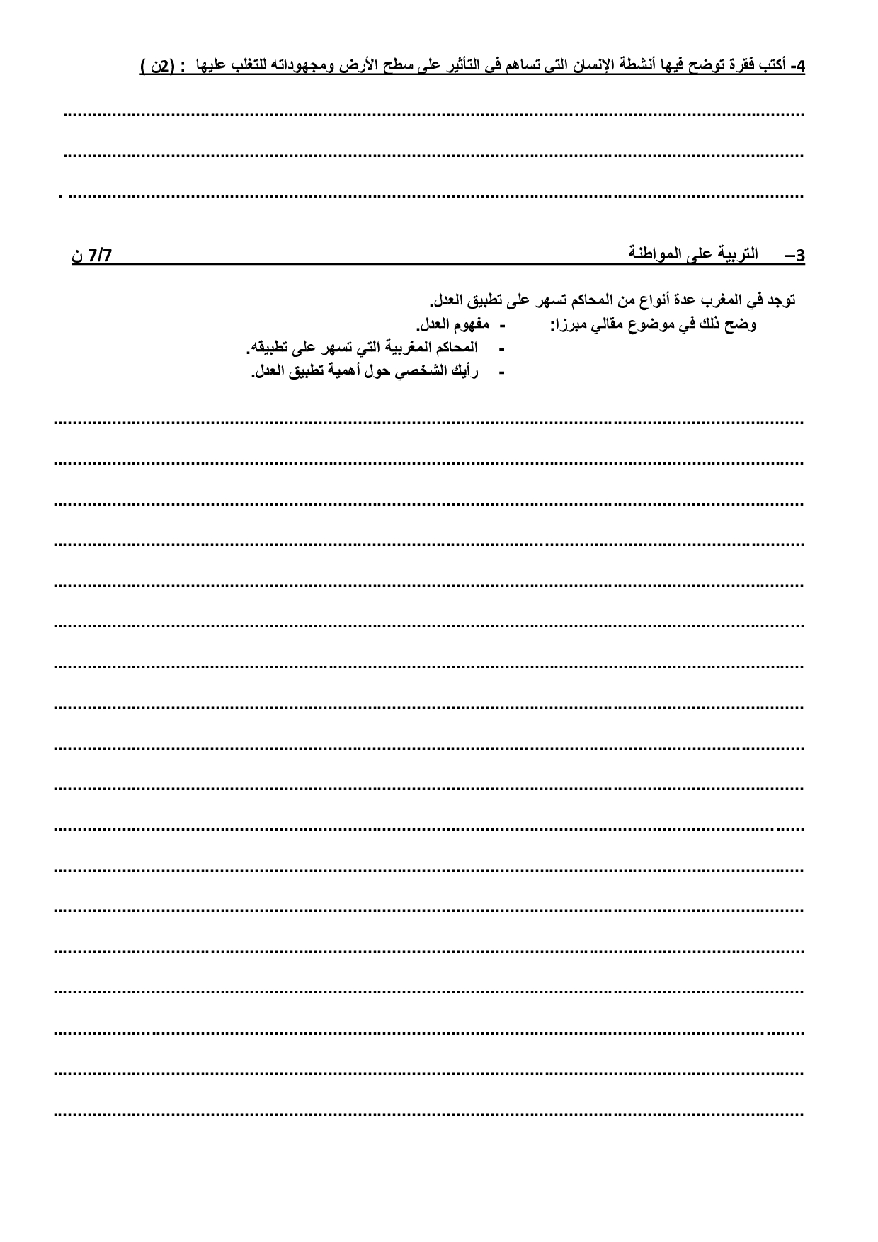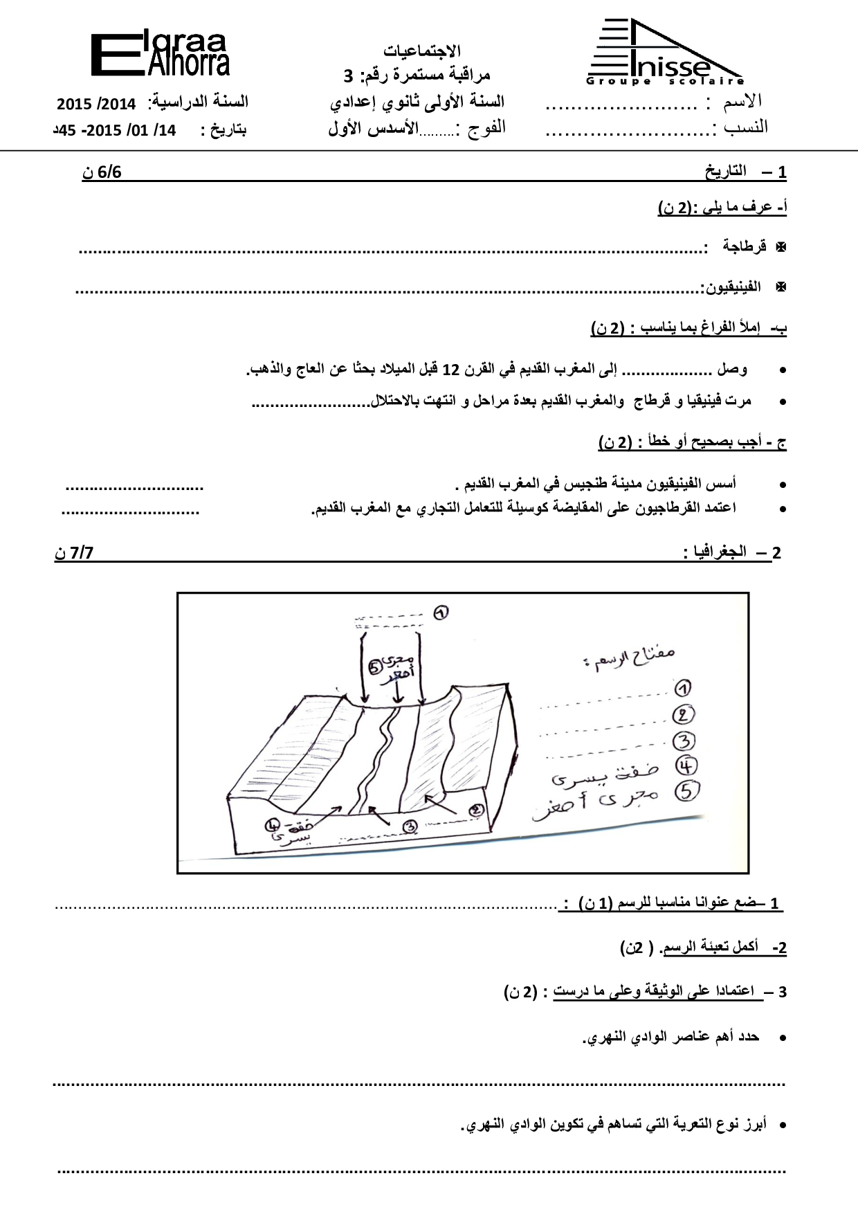 الفرض 3 نموذج 5 - الإجتماعيات أولى إعدادي الدورة الثانية
